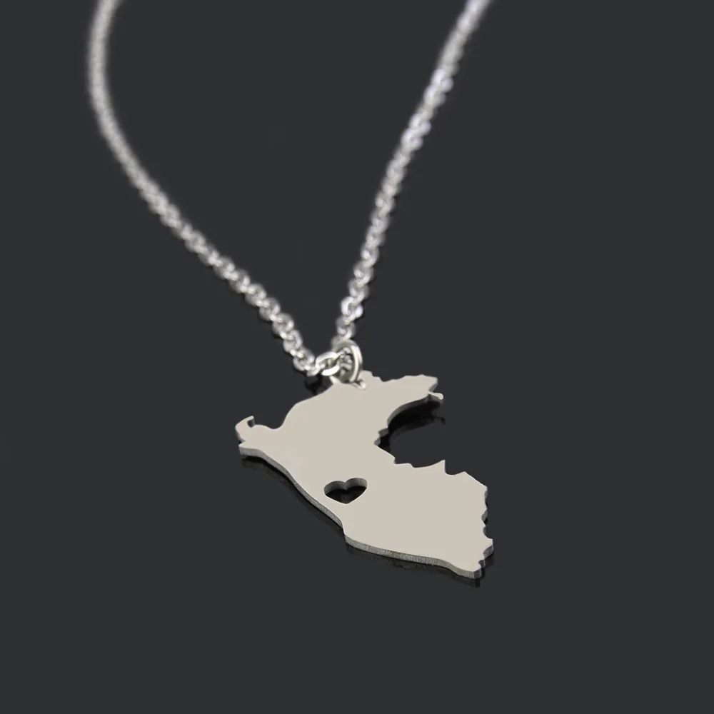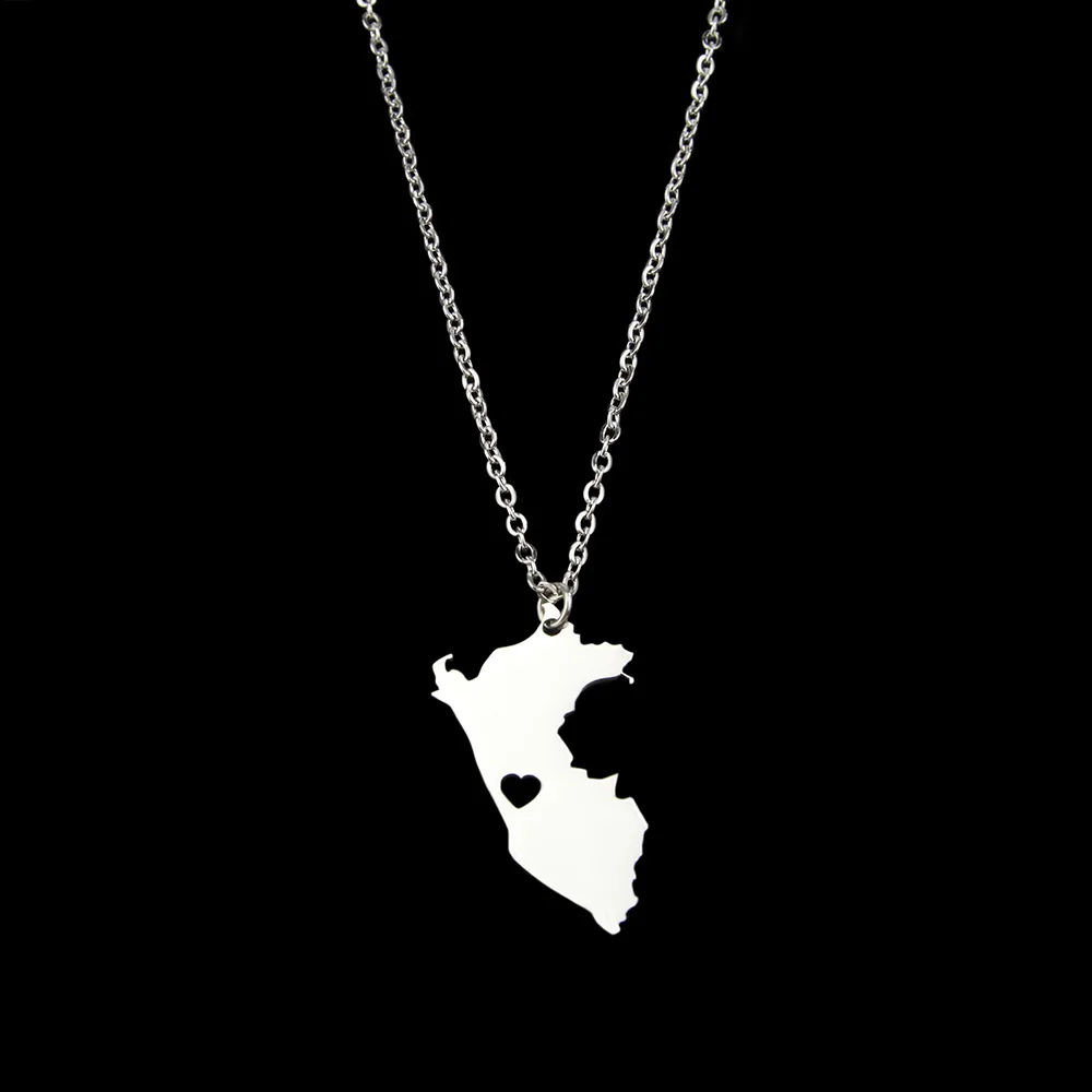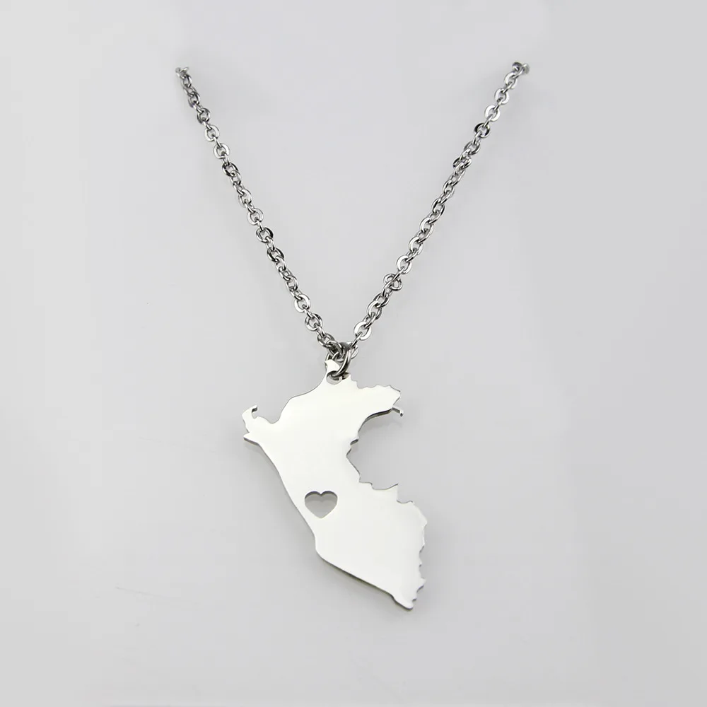 Peru Map Pendant Necklaces Stainless Steel For Women Girls Maps of the Peru Jewelry Gifts