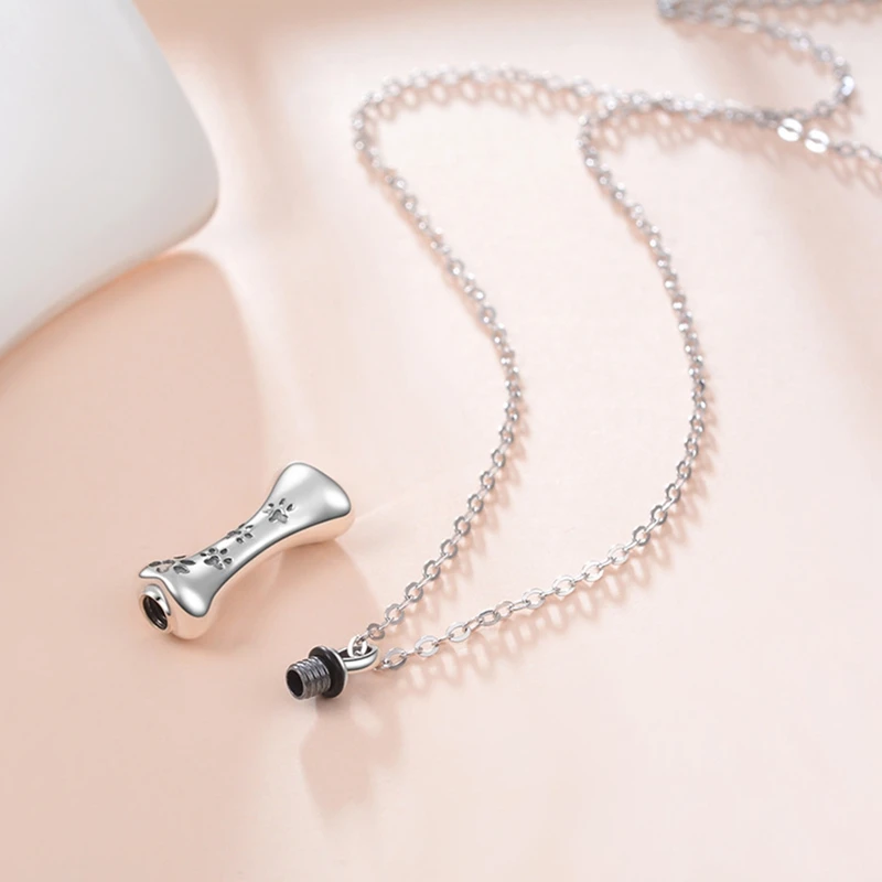 Pet Cremation Ashed Urn Necklace In Stainless Steel Pet Loss Dog Bone Cremation Urn Pendant Necklace