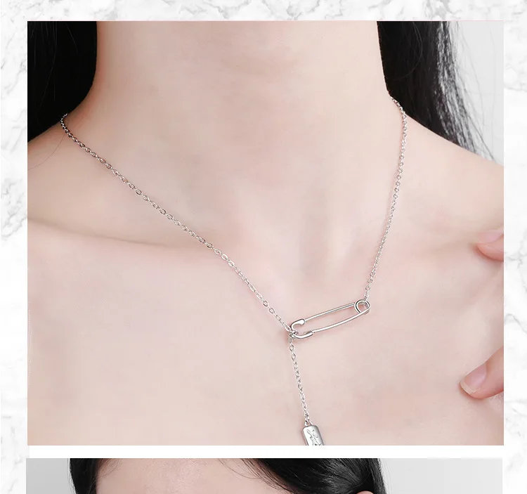 Pin LOVE Sign 925 Stamp Silver Color Trendy Pendant Chain Necklace For Women Girl Necklace Anniversary Fine Jewelry