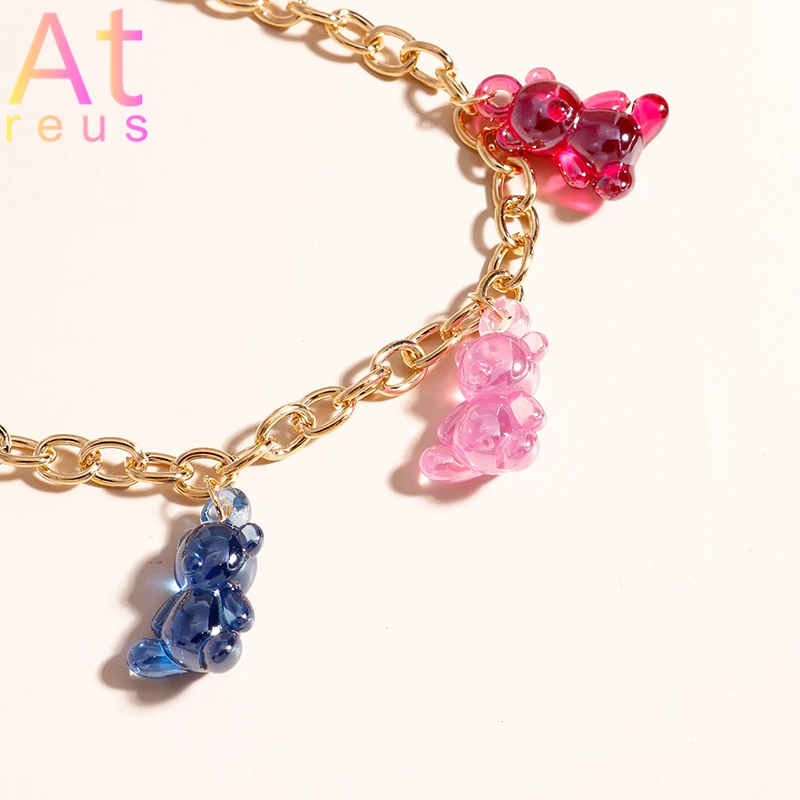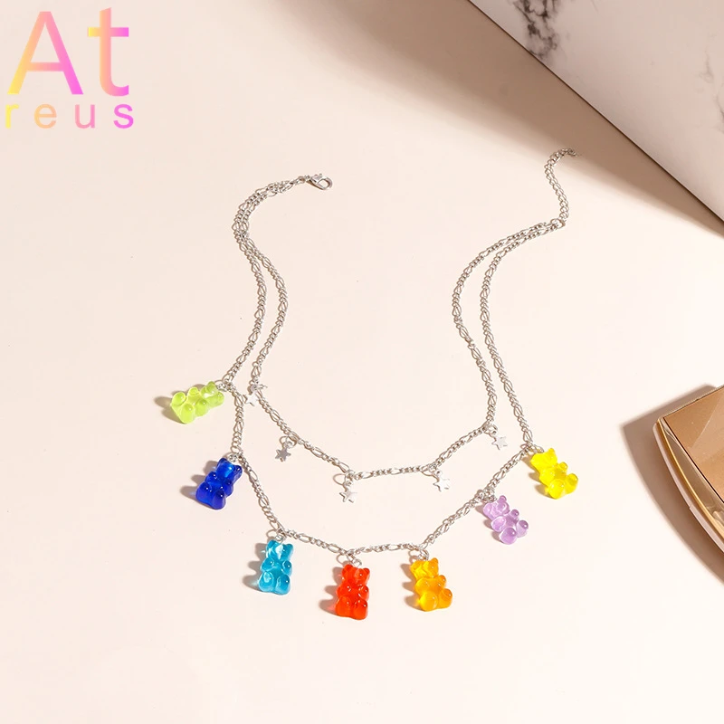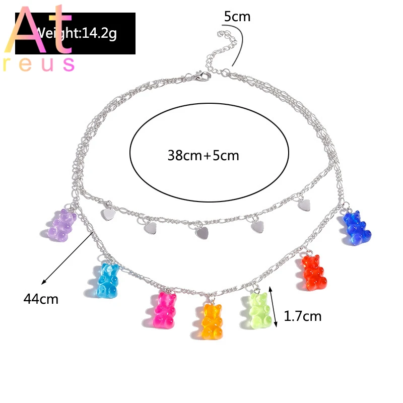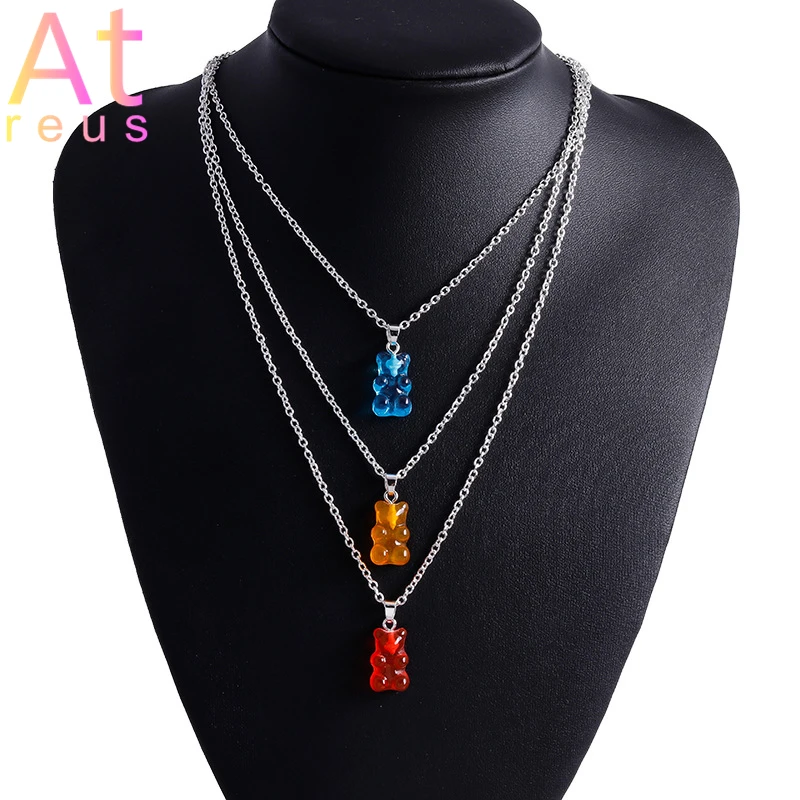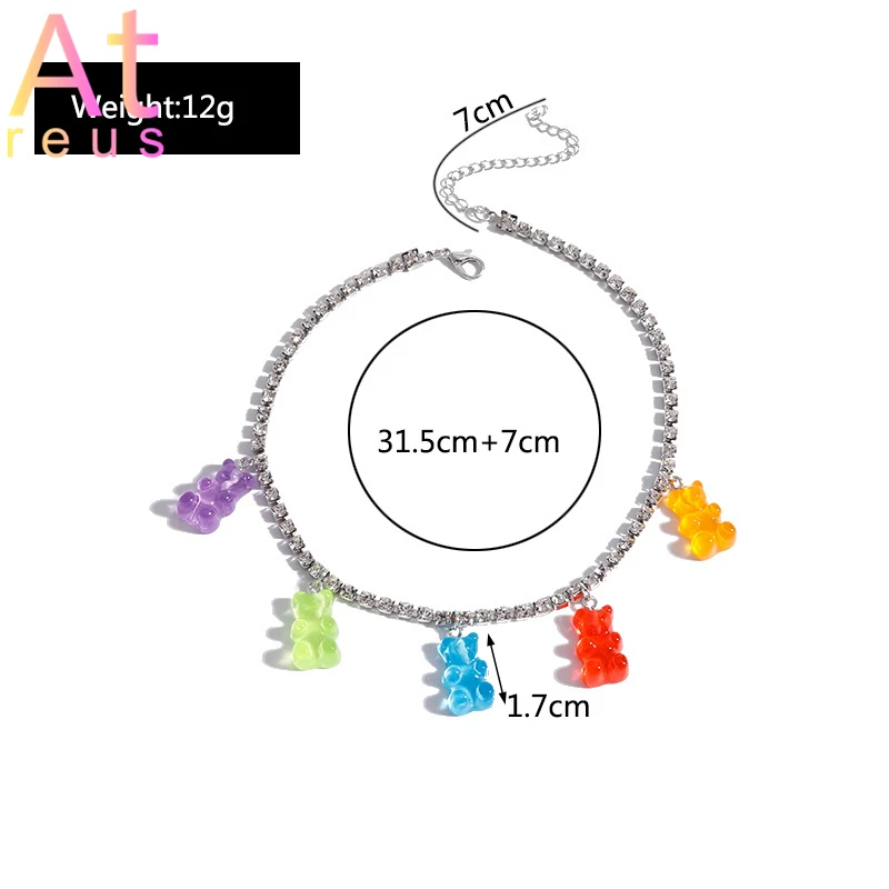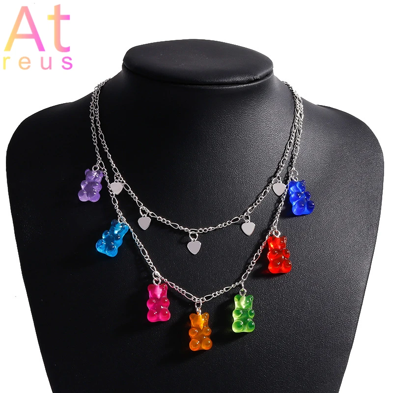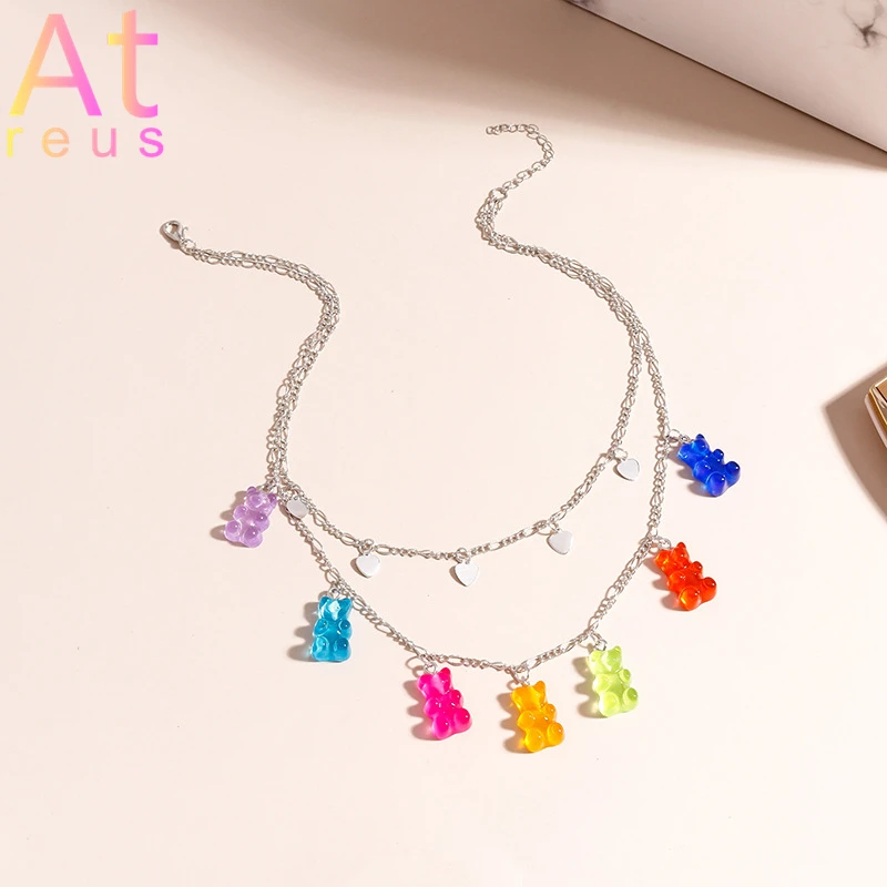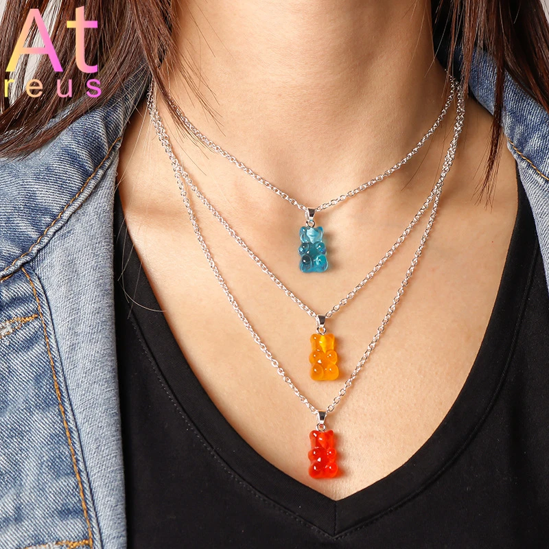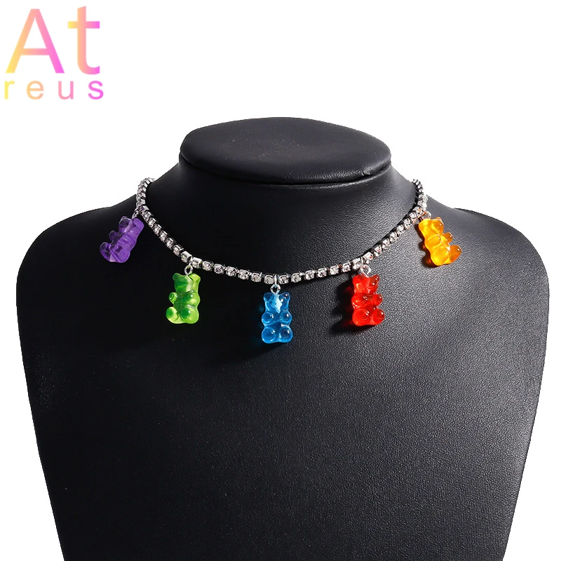 Pink Plastic Resin Chain Colorful Cartoon Gummy Mini Bear Resin Necklace Candy Color Pendant For Women Girl Jewelry Gift