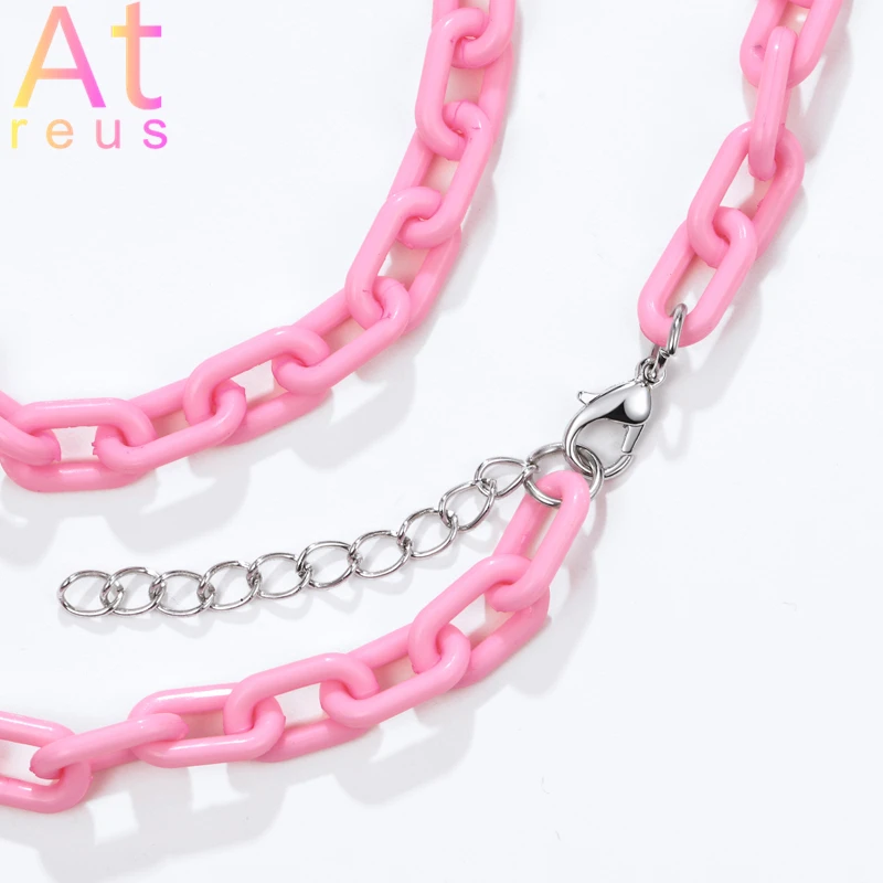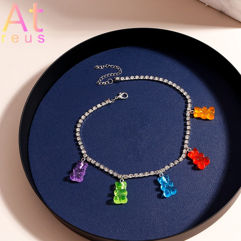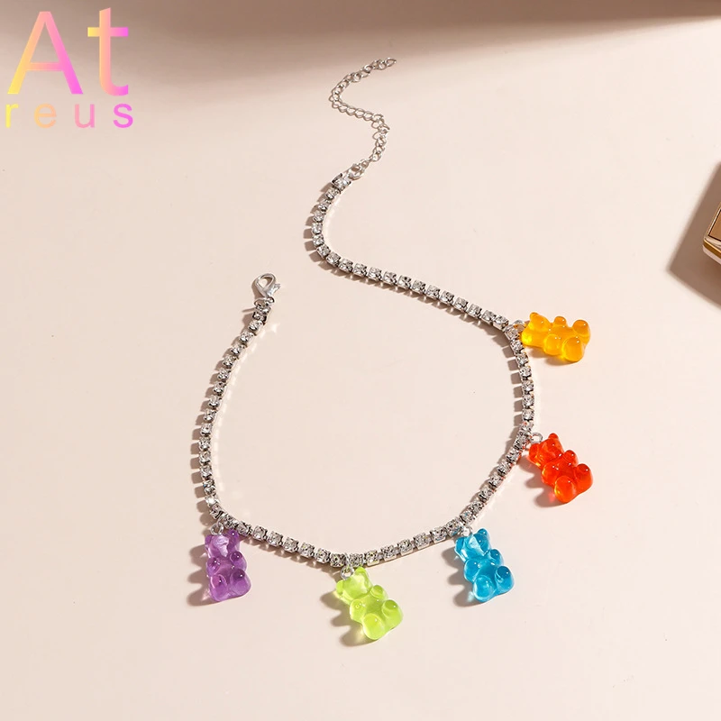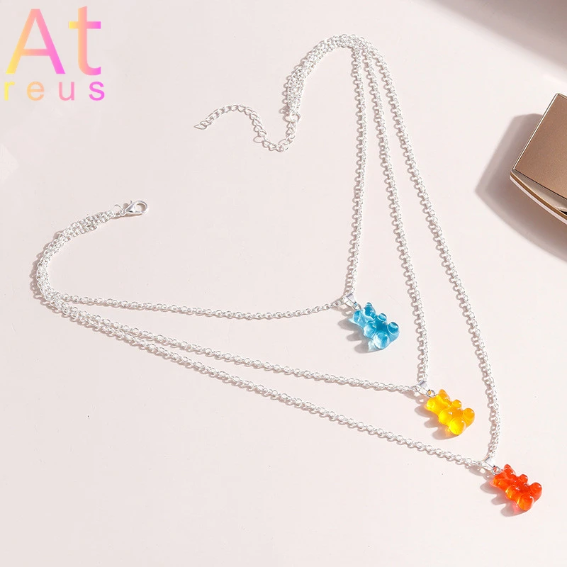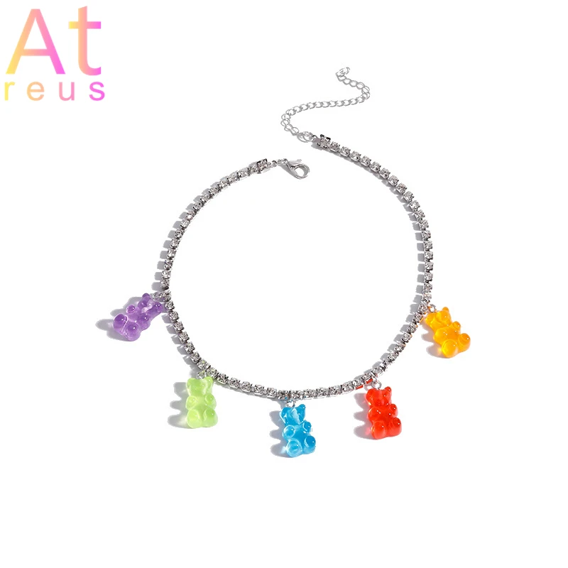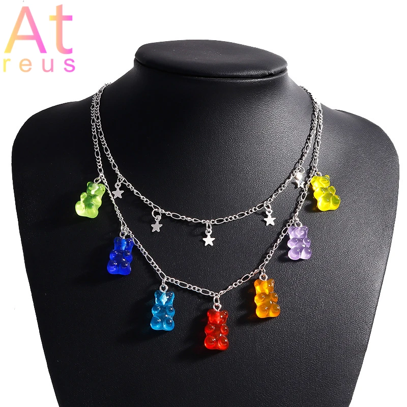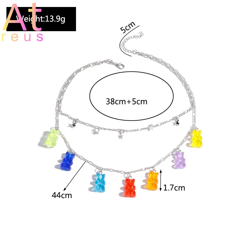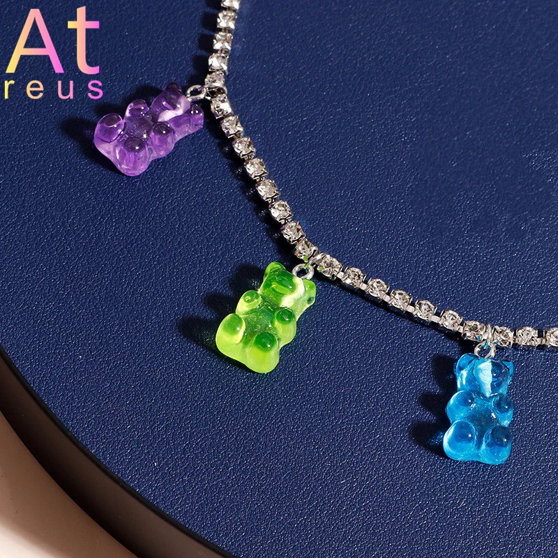 Pink Plastic Resin Chain Colorful Cartoon Gummy Mini Bear Resin Necklace Candy Color Pendant For Women Girl Jewelry Gift