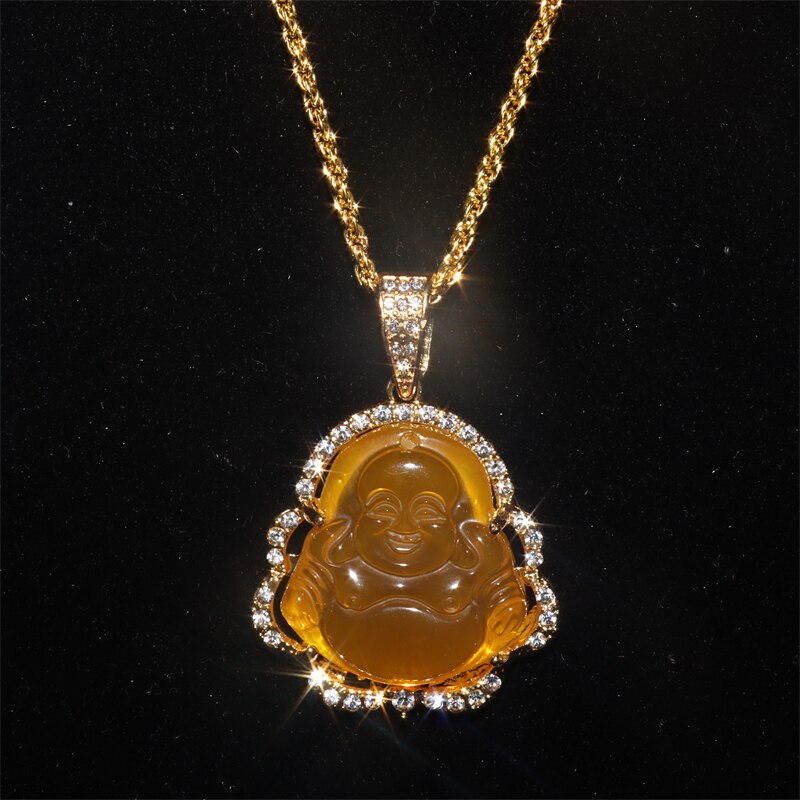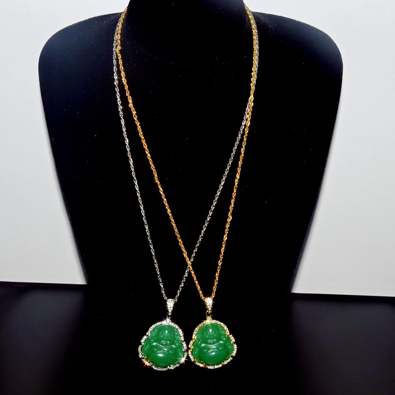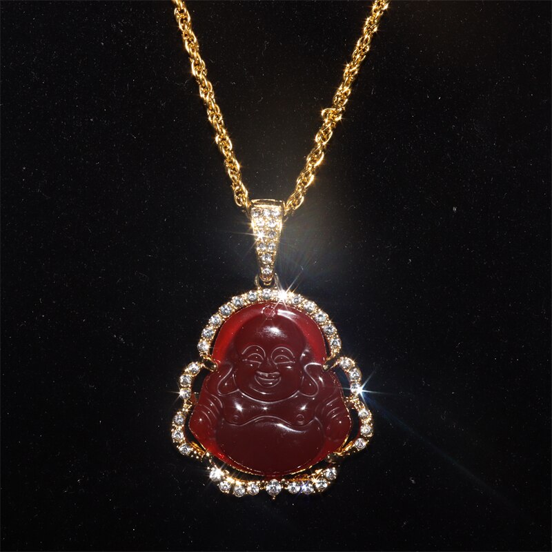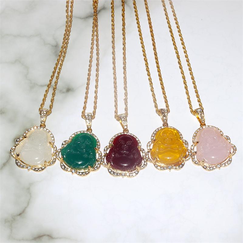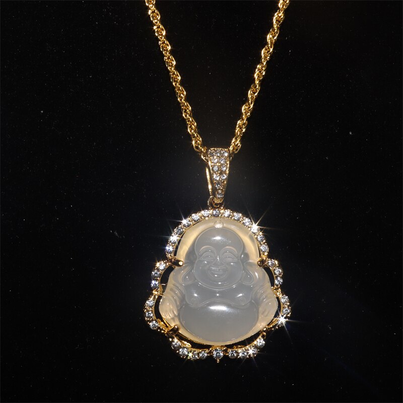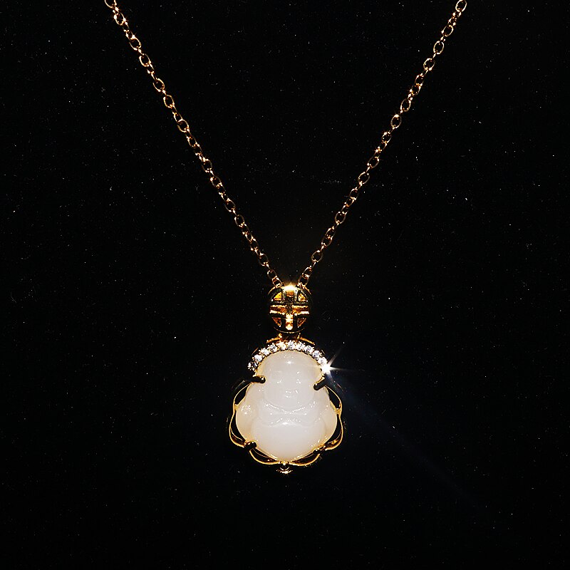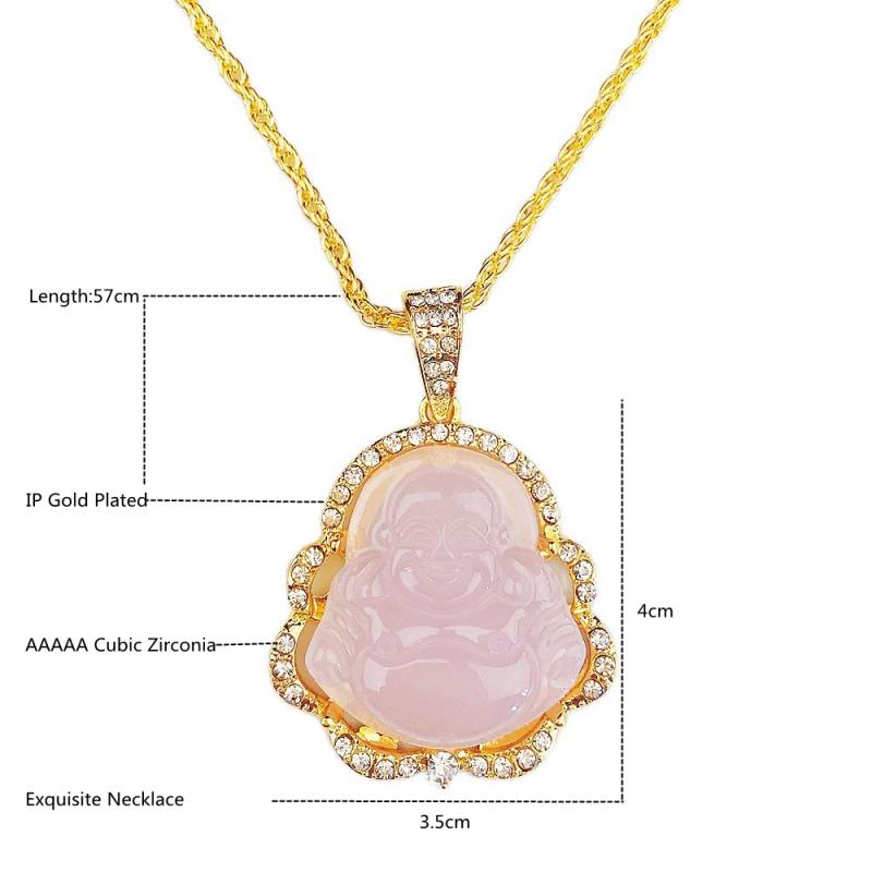 Pink White Pendant Buddha Necklace Women Chinese Style Maitreya Jewelry Talisman Necklace with Golden Chain