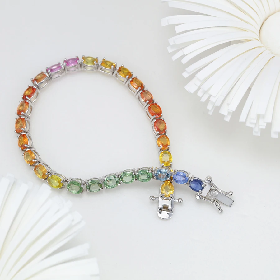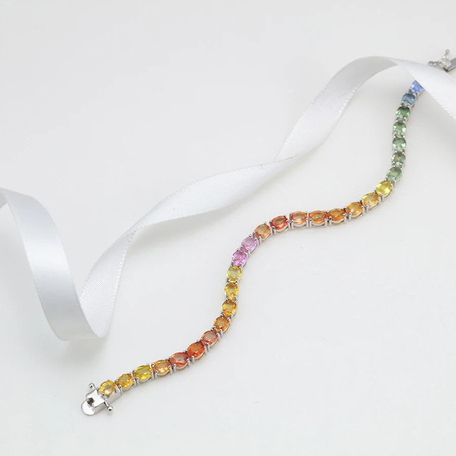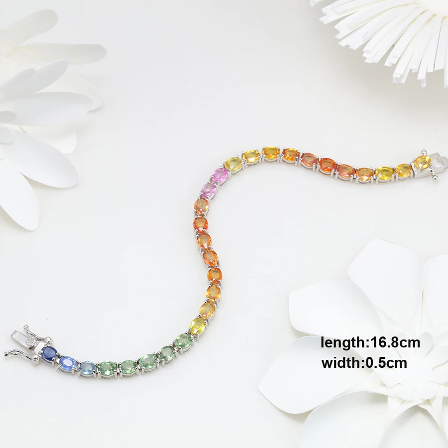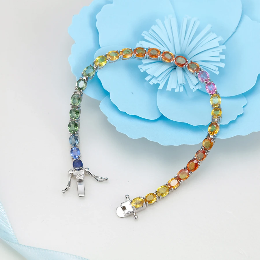 Nature Colored Gemstone Sterling Silver Luxury Engagement Party Bracelet for Woman Gift