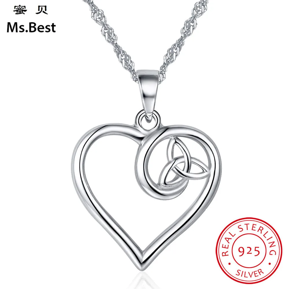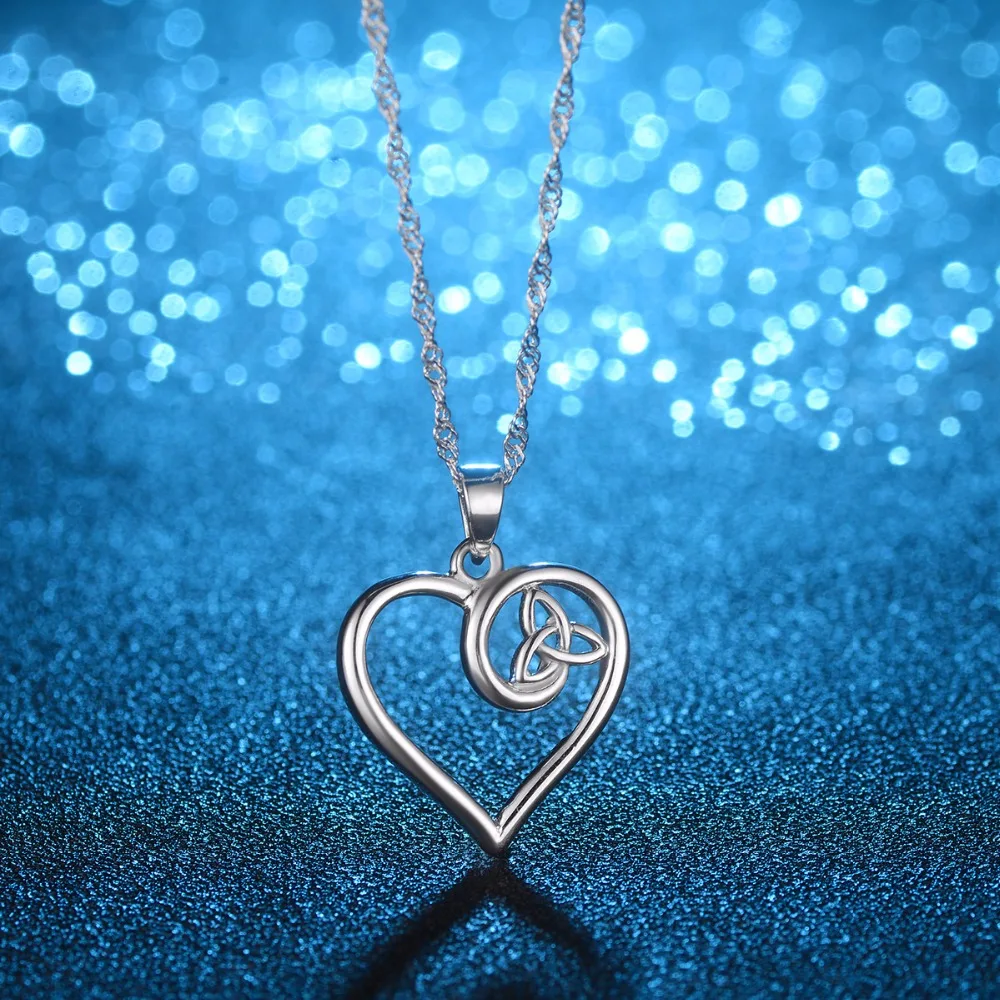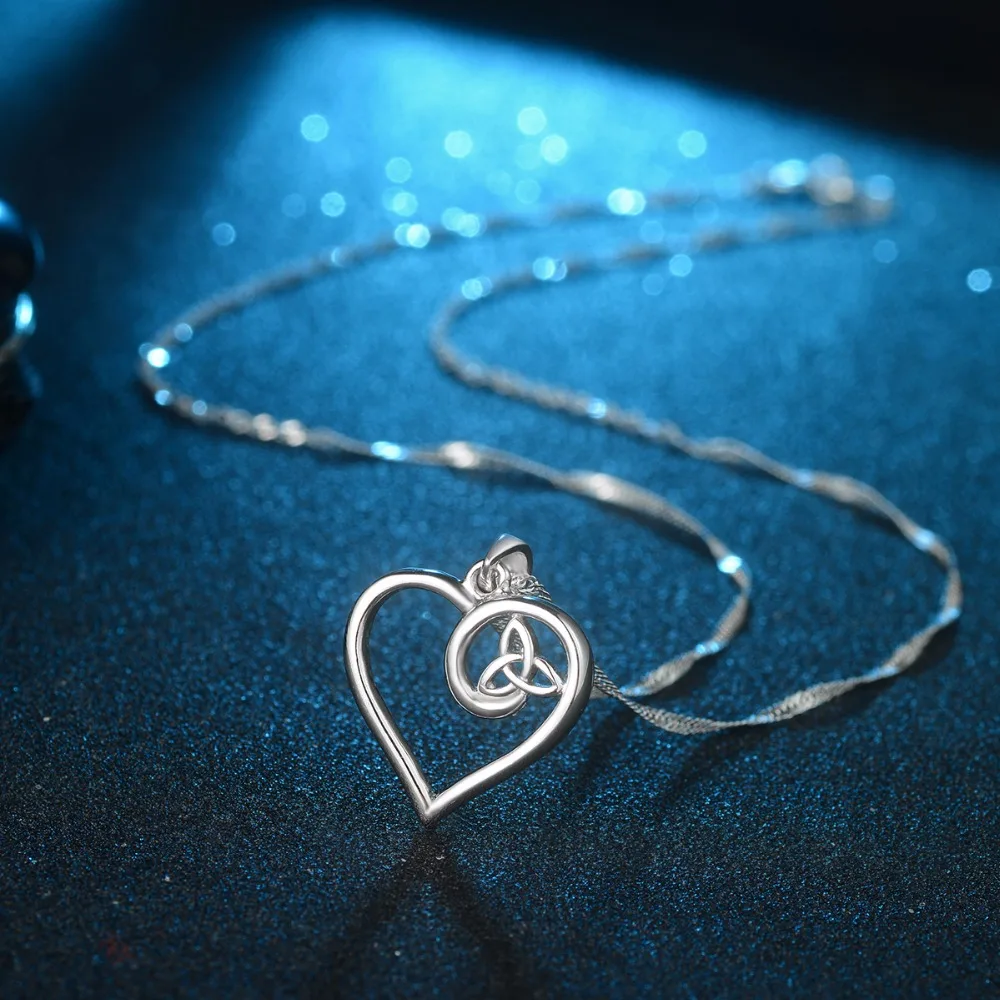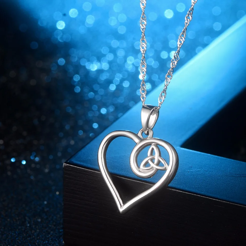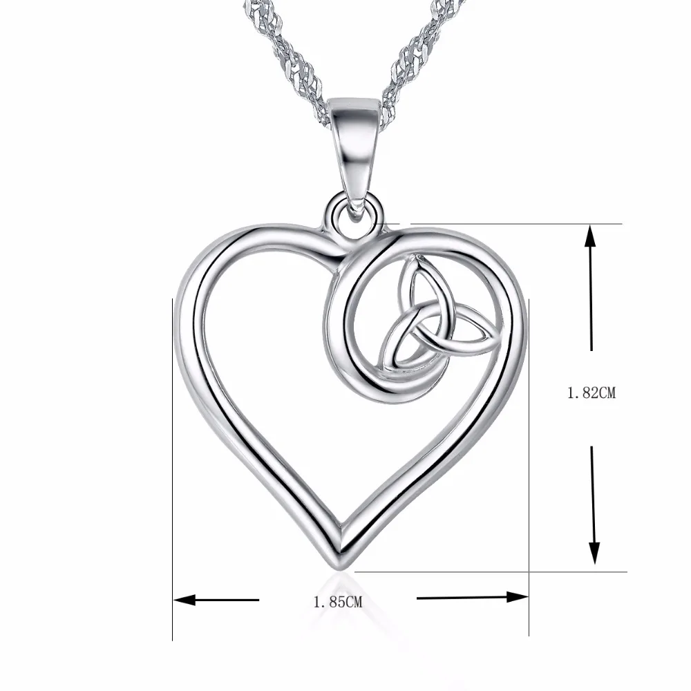 Plain S925 Solid Sterling Silver Celtics Irish Heart Pendant Necklaces for Women Fine Jewelry Valentine's Mother's d Gift
