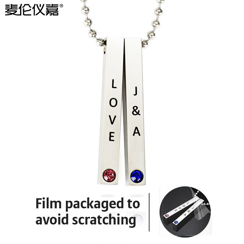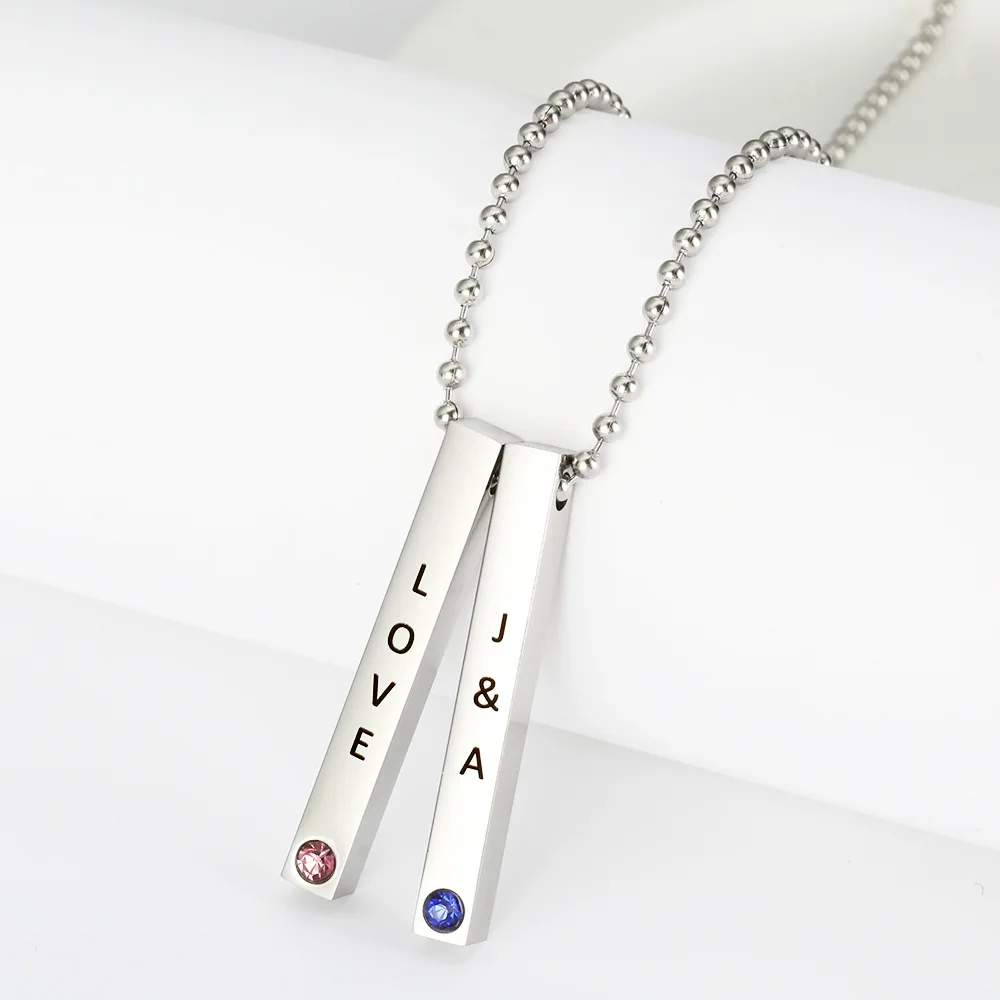 PolishedPlus Customized Engraved 4 Sides Necklace Stainless Steel Personalized Custom For Lover unique anniversary Birthday Gift
