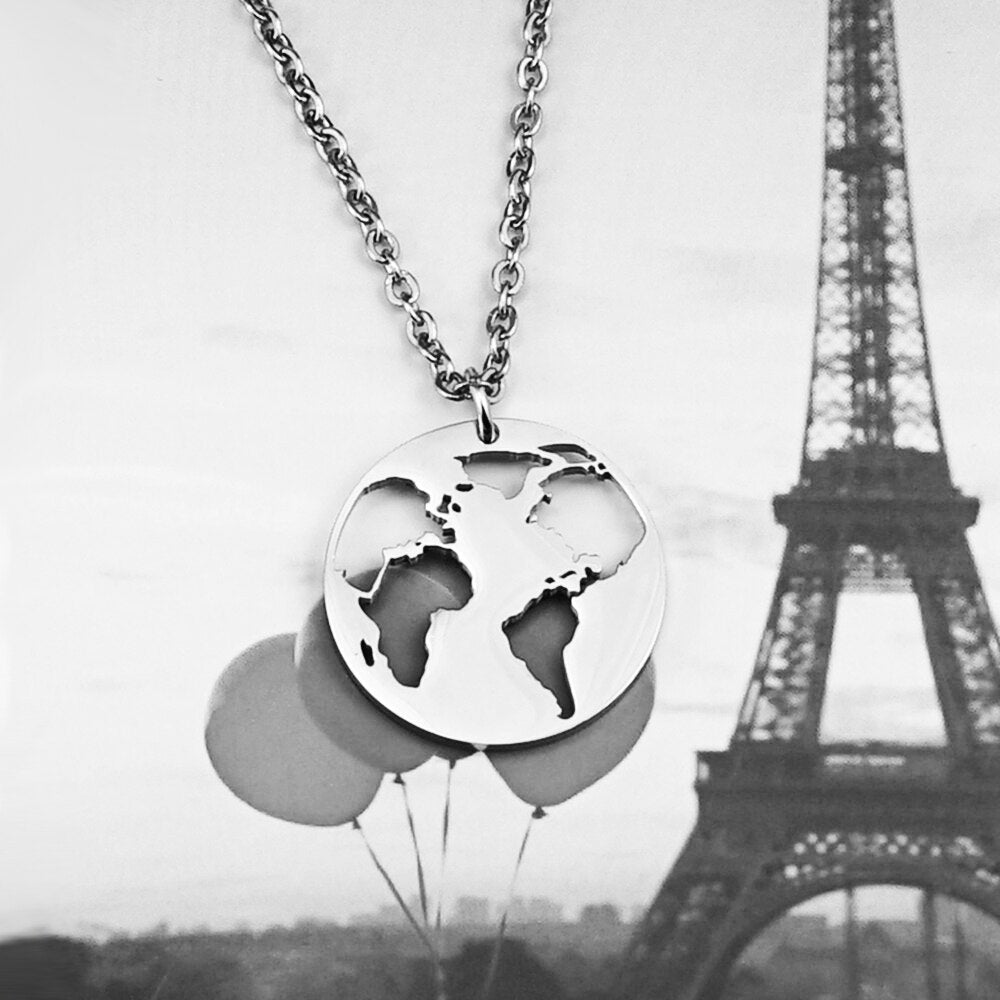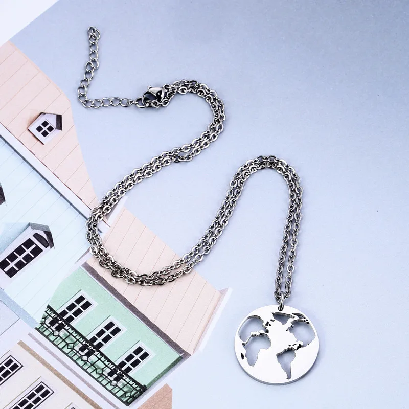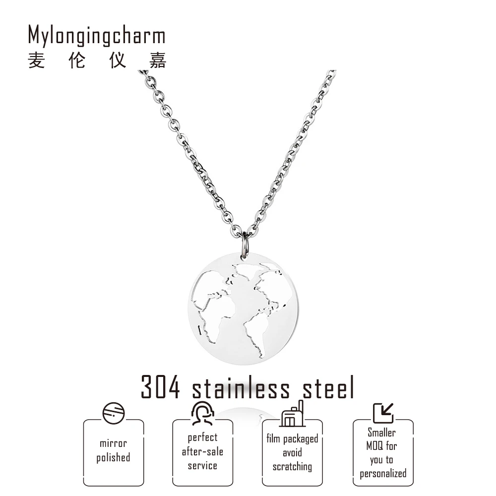 PolishedPlus Customized necklace hollow world map stainless steel travel personalized custom for Women birthday girl gift