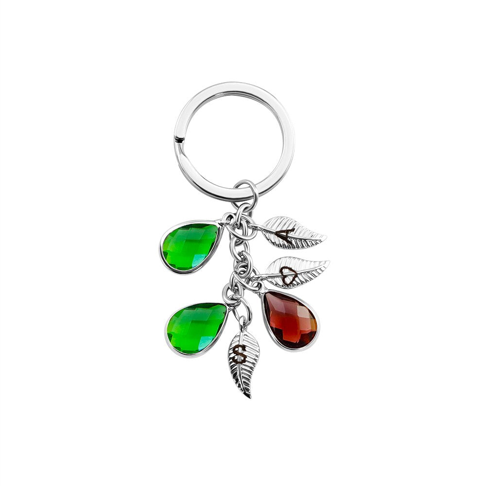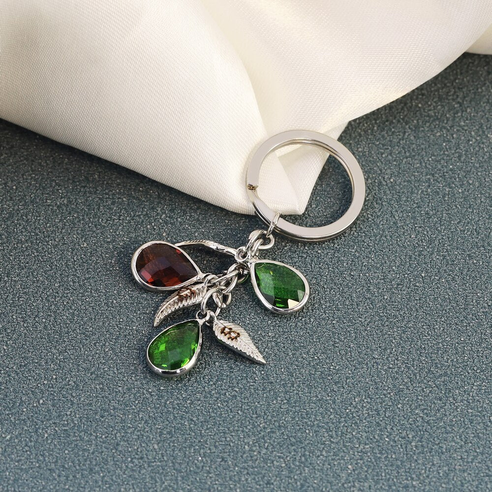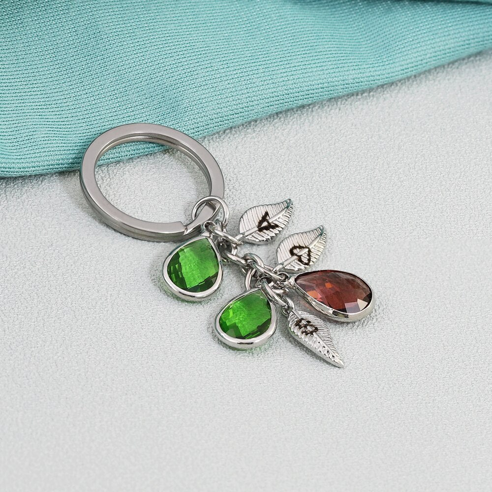 PolishedPlus Personalized Keychain Initial Name With Birthstone Waterdrop Leaf Pendants Free Engraving For Women Mom Friends