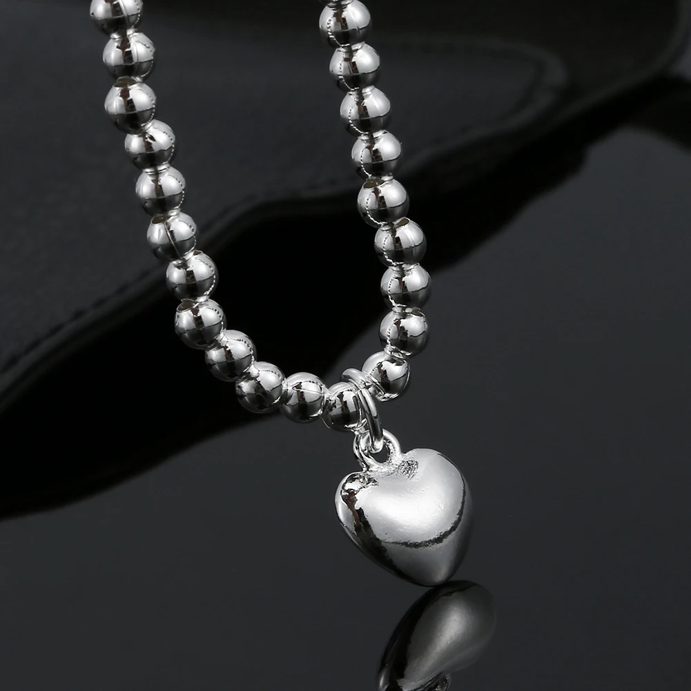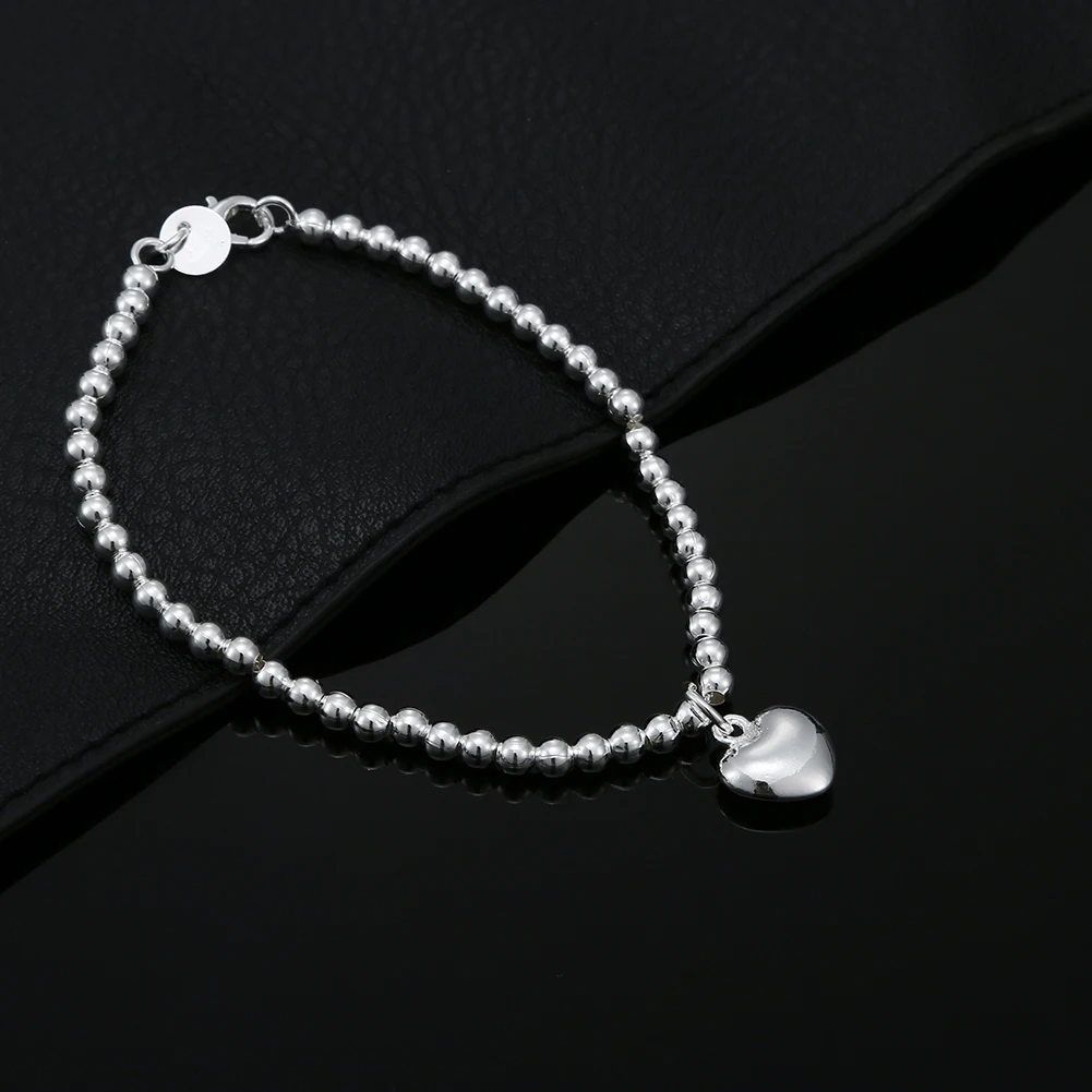 Popular brands 925 sterling Silver Heart beads chain Bracelet for Women party wedding accessories designer Jewelry gifts