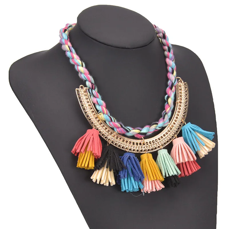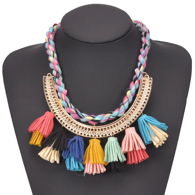 Popular Ethnic Necklace Bohemia Colorful Velvet Tassel Pendant Choker Neck Boho Collar Silk Thread Rope Chain Necklace for Women