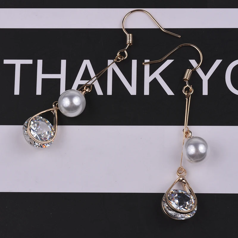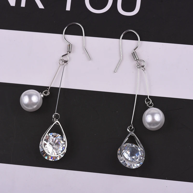 PPG&PGG Elegant Water drop Pattern Earrings Crystal Dangle Simulated Pearl Earring for Women Fashion Statement Jewelry