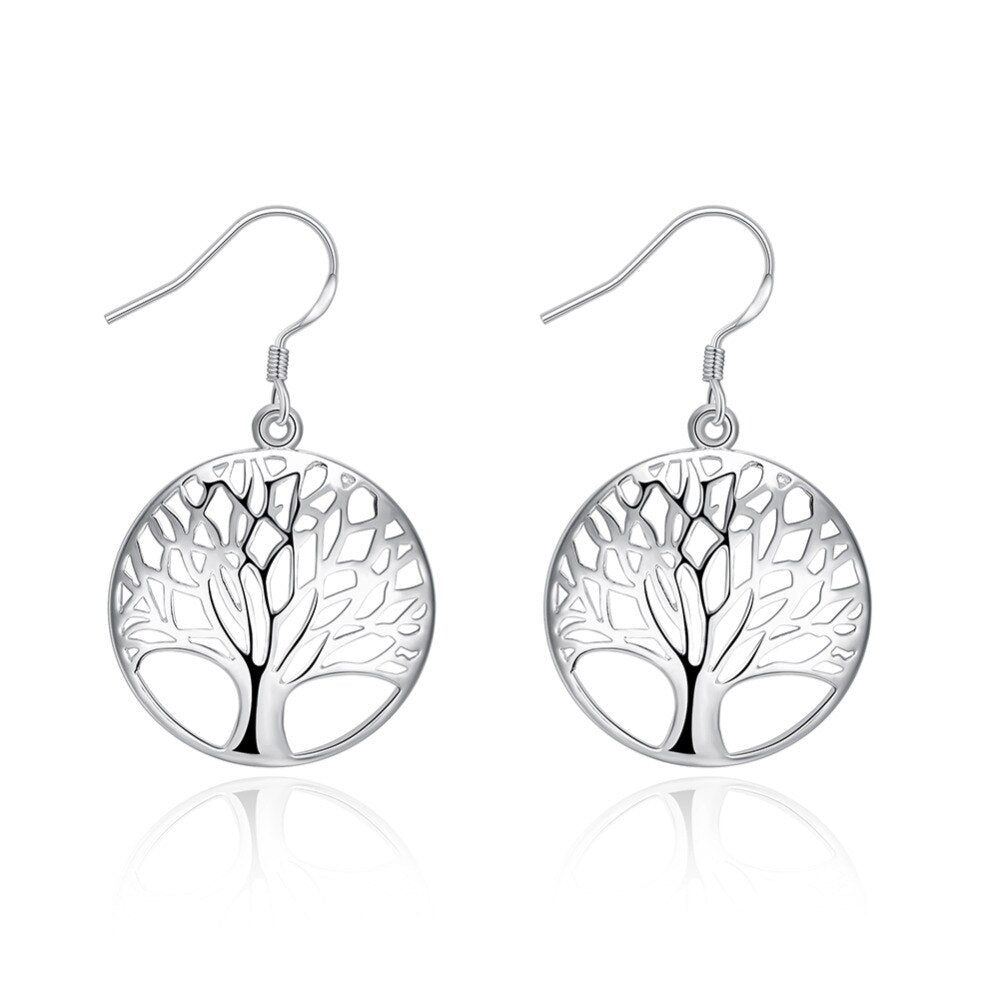 Pretty 925 Sterling Silver Hollow Round tree drop Earrings for Women Jewelry party Christmas Gifts
