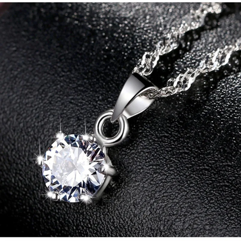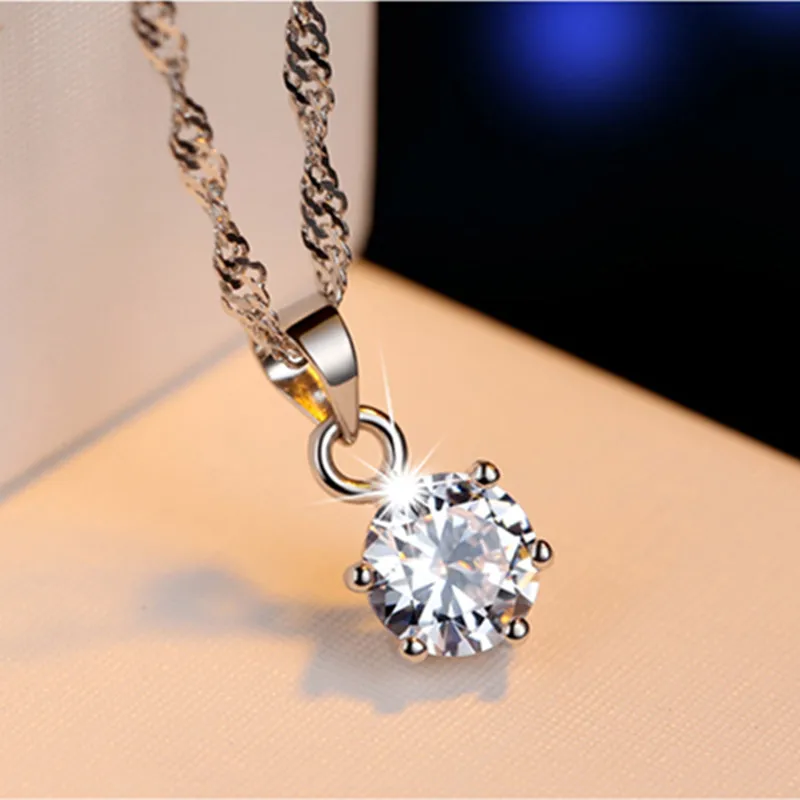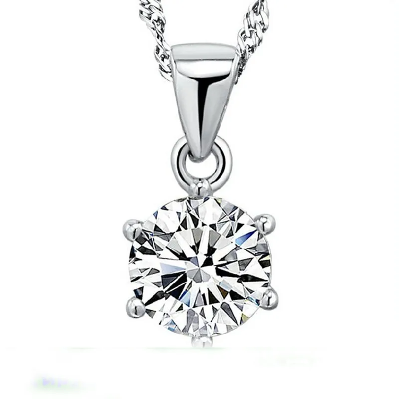 Price reduction Six-claw Zircon Round Pendant Necklace Women charms silver 925 original necklaces fine Jewelry choker pulseira