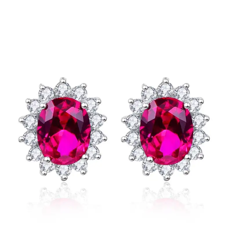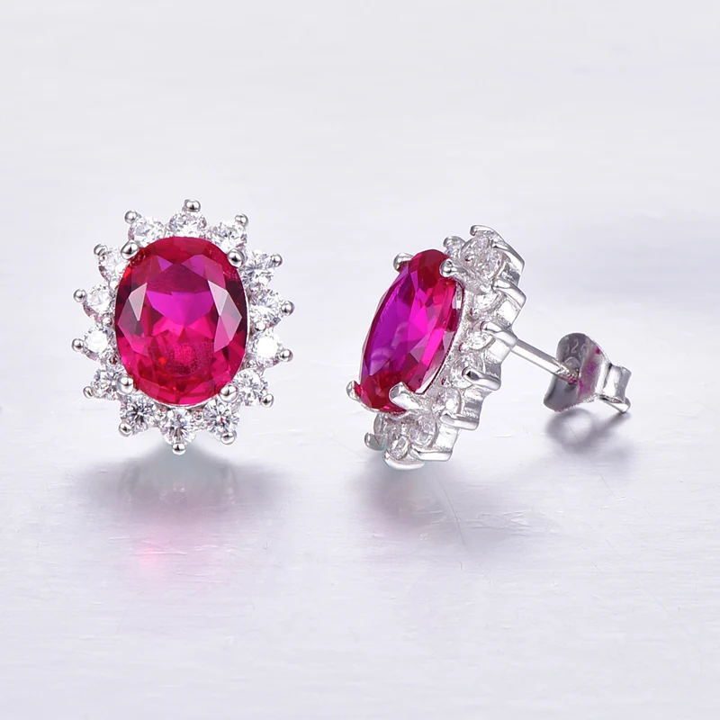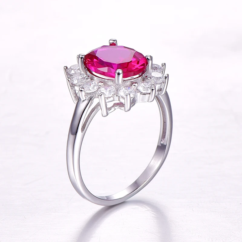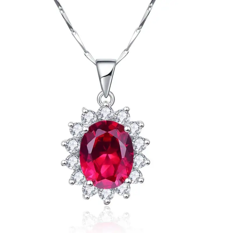 Princess Diana Sun Flower Decoration Ruby Wedding Bridal Earrings& Necklaces& Rings Jewelry Sets Sterling Silver 925