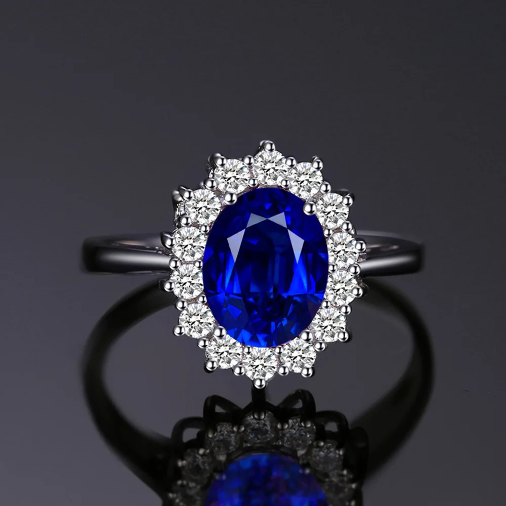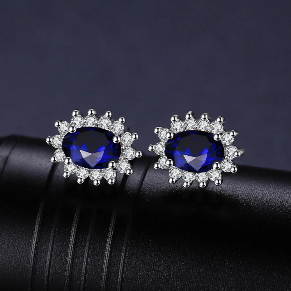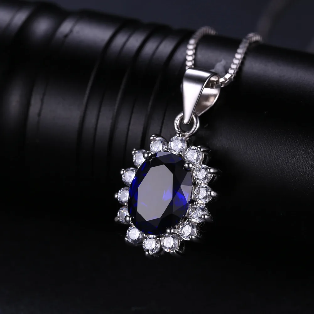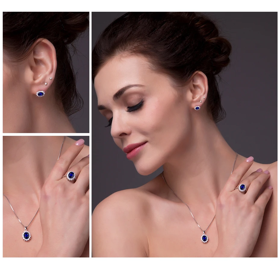 Diana William Engagement Wedding Created Sapphire Jewelry Set 925 Sterling Silver Ring Pendant Stud Earring 45cm Box chain
