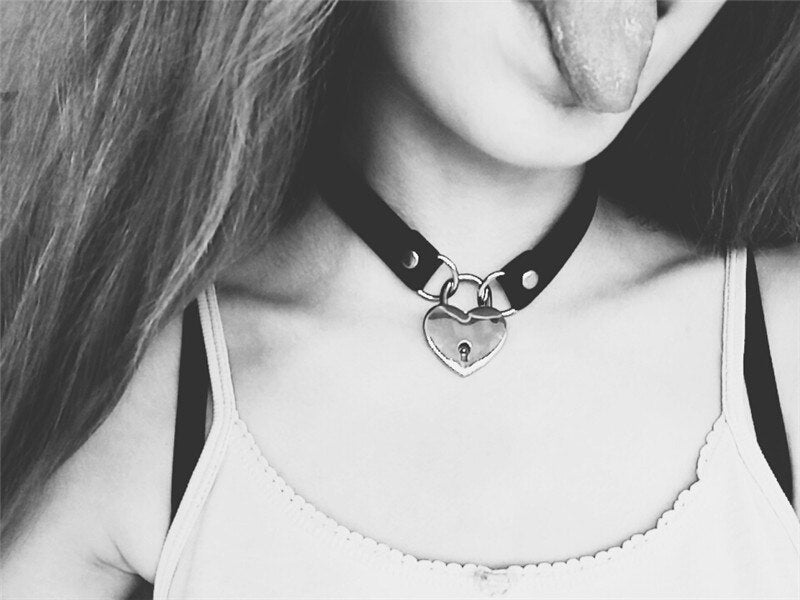 PU Leather Heart Choker Necklace Women Simple Punk Heart Love Lock Collar Necklaces Harajuku Gothic Clavicle Chain Party