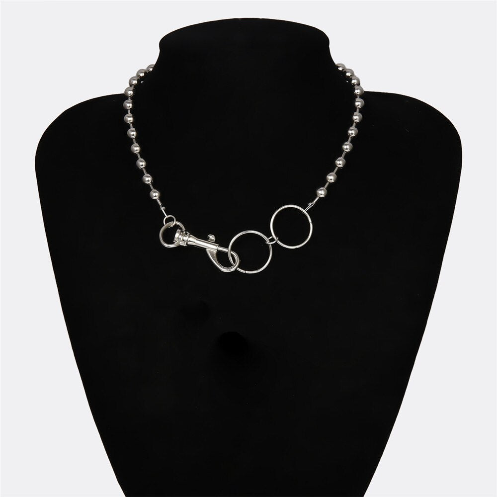Punk Bead Choker Necklace for Women Gothic Double Round Circle Necklace Personality Statement Jewelry Neck Collier Femme