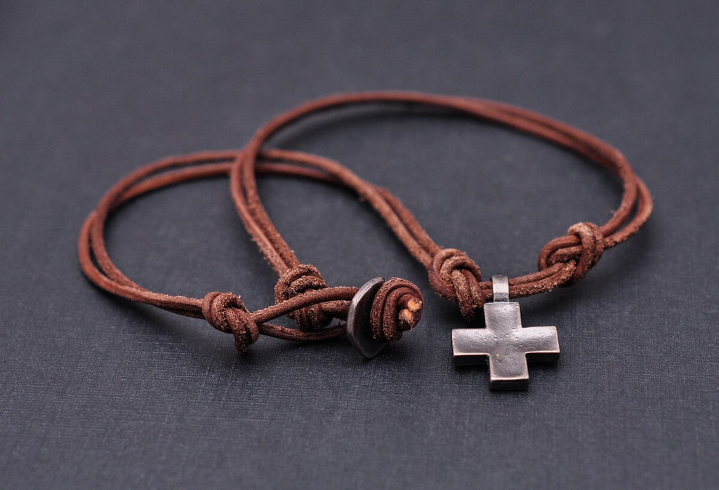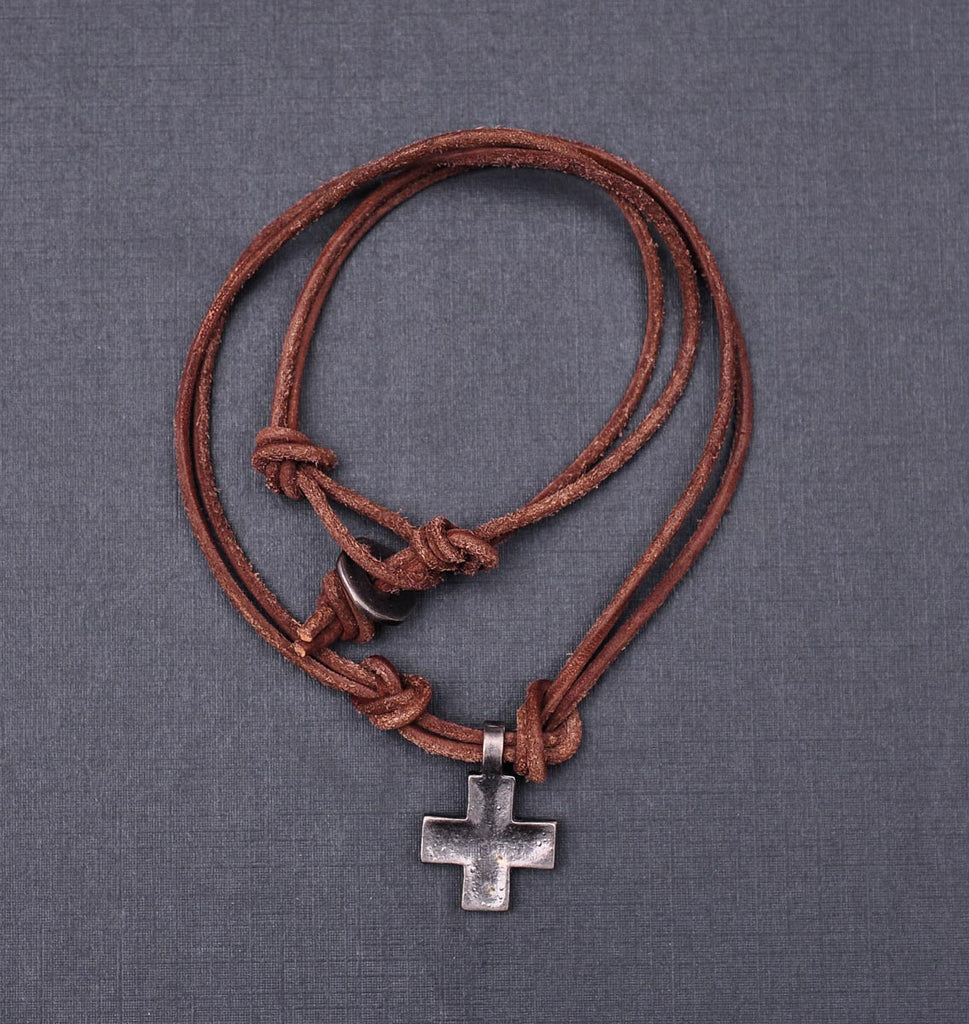 Punk Biker Brown Surfer Cute Cross Pendant Leather Lace Necklace Choker 18"