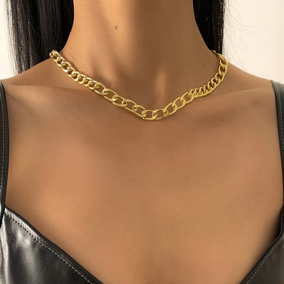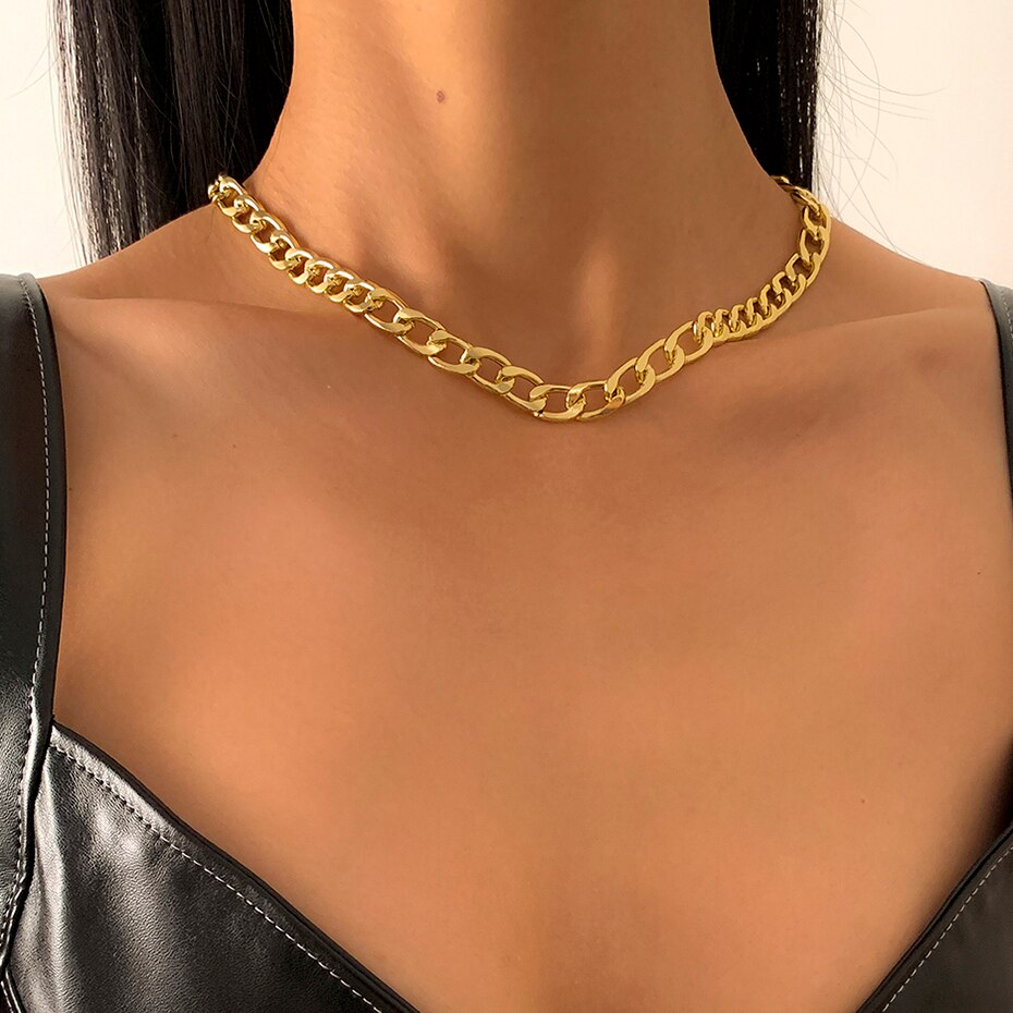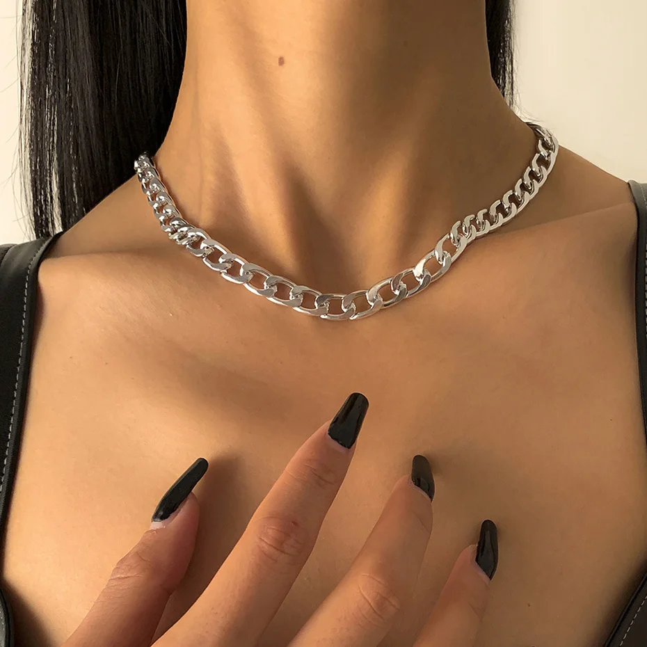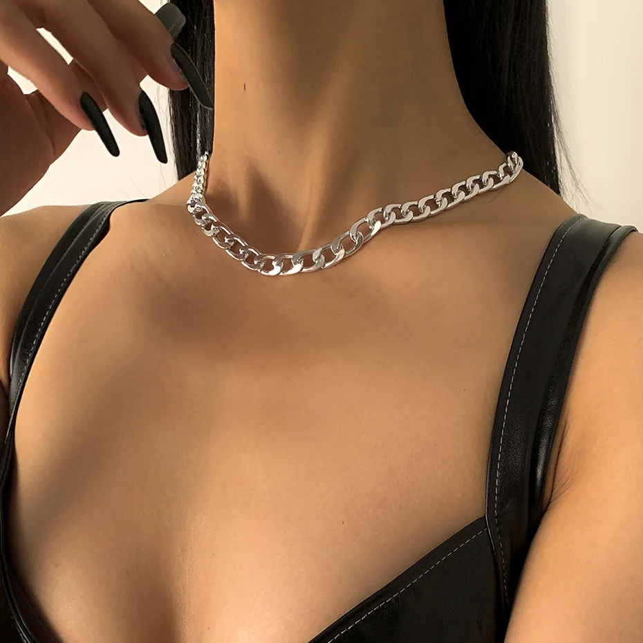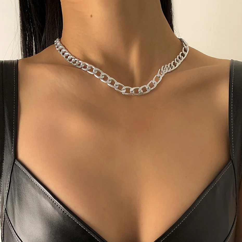 Punk Boho Metal Chain Necklaces for Women Men Link Steampunk Rock Short Choker Necklace Clavicle Chain Minimalist Jewelry