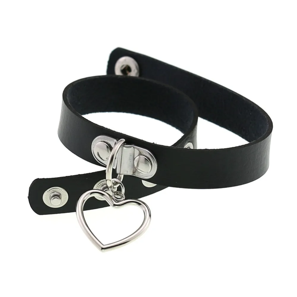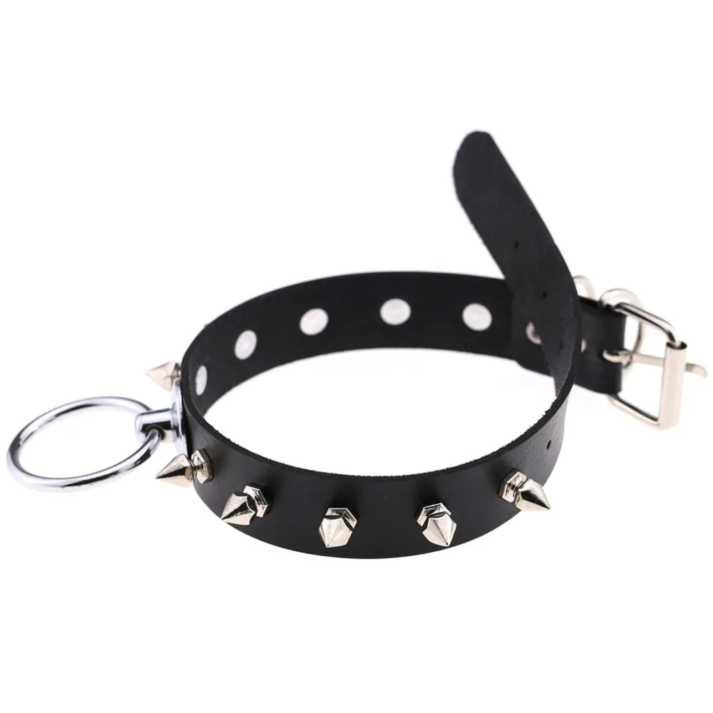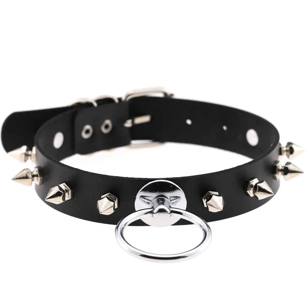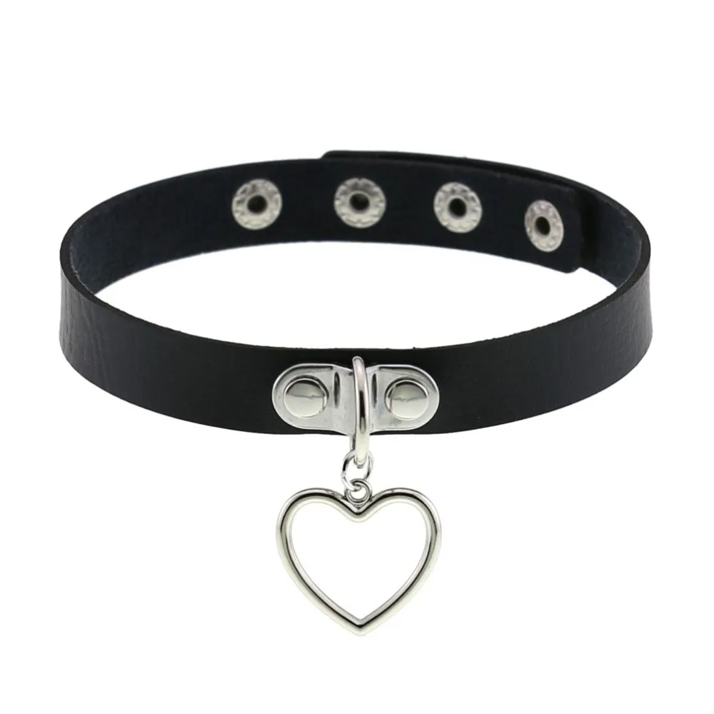 Punk Gothic Black Pu Leather Heart Cross Round Choker Necklace For Women Spike Rivet Neck Jewelry Chocker Collar Necklaces