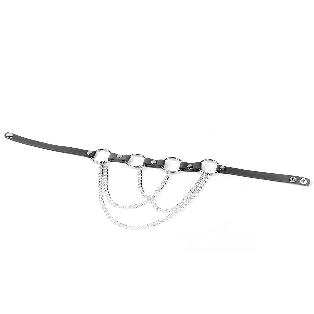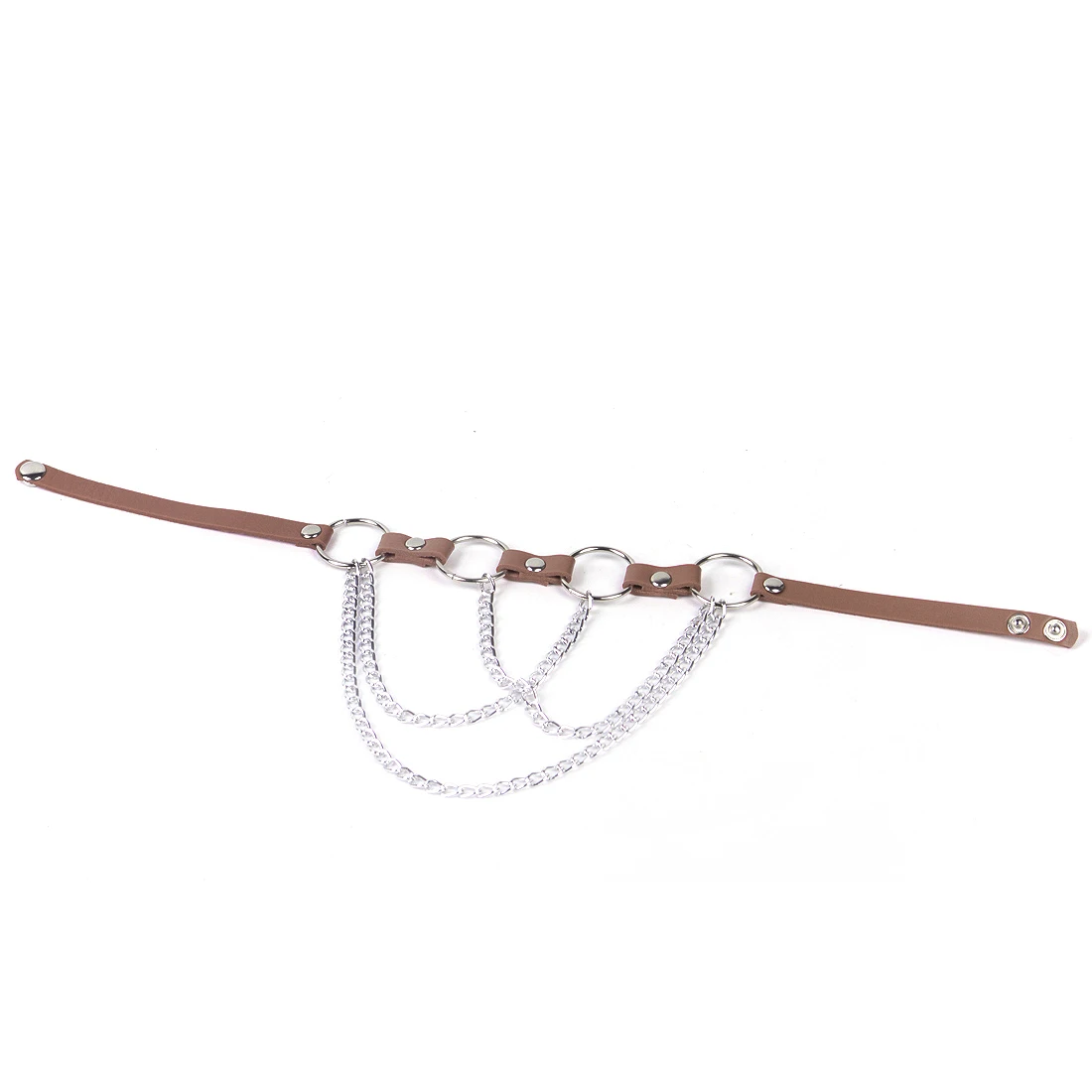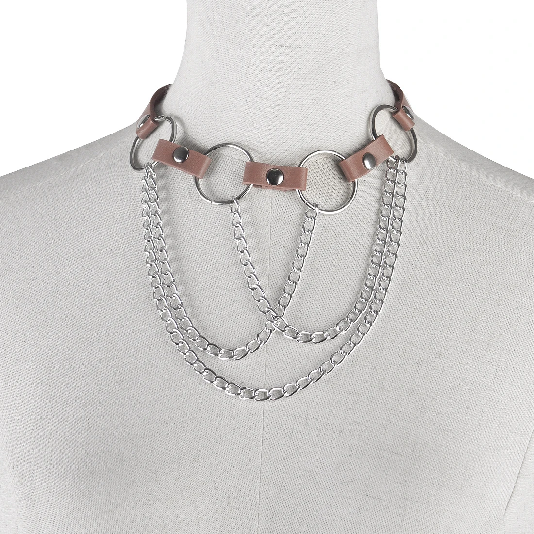 Punk Gothic Hip Hop Dancer Leather Choker Necklace Collar Circles Tassels Adjustable 3colors