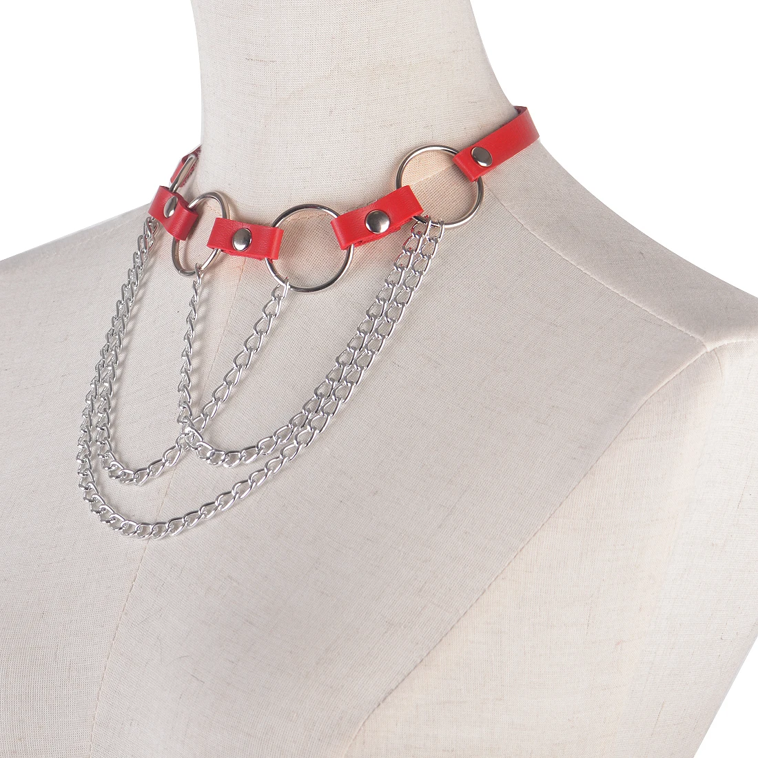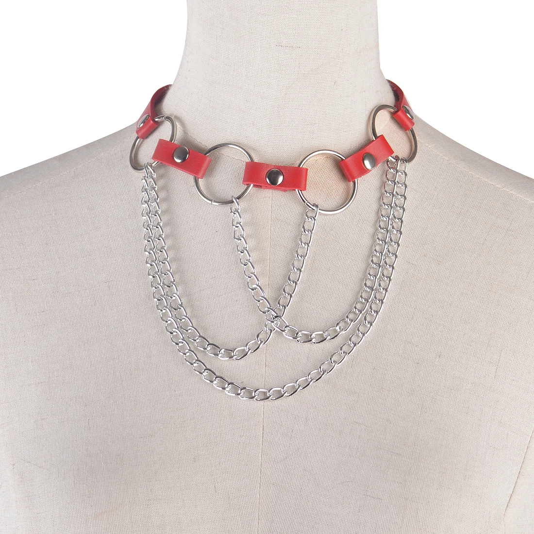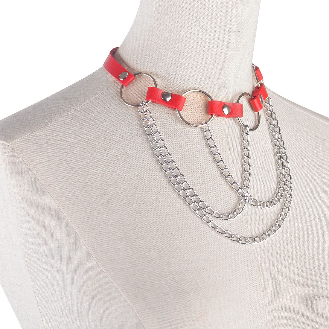 Punk Gothic Hip Hop Dancer Leather Choker Necklace Collar Circles Tassels Adjustable 3colors