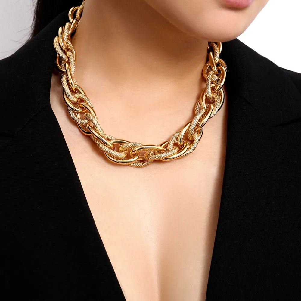 Punk Hip Hop Golden Metal Choker Necklace for Women Statement Necklaces Gothic Cuban Chunky Chain Charm Necklace
