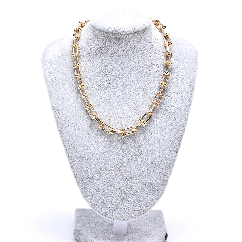 Punk Hip Hop Golden Metal Choker Necklace For Women Statement Necklaces Gothic Cuban Chunky Chain Charm Necklace