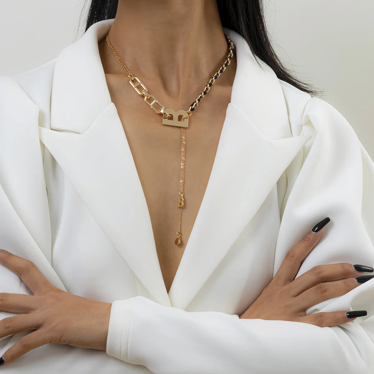 Punk Letter B Pendant Thick Chain Necklace for Women Men Goth Choker Neck Chains Vintage Necklace Jewelry Gift
