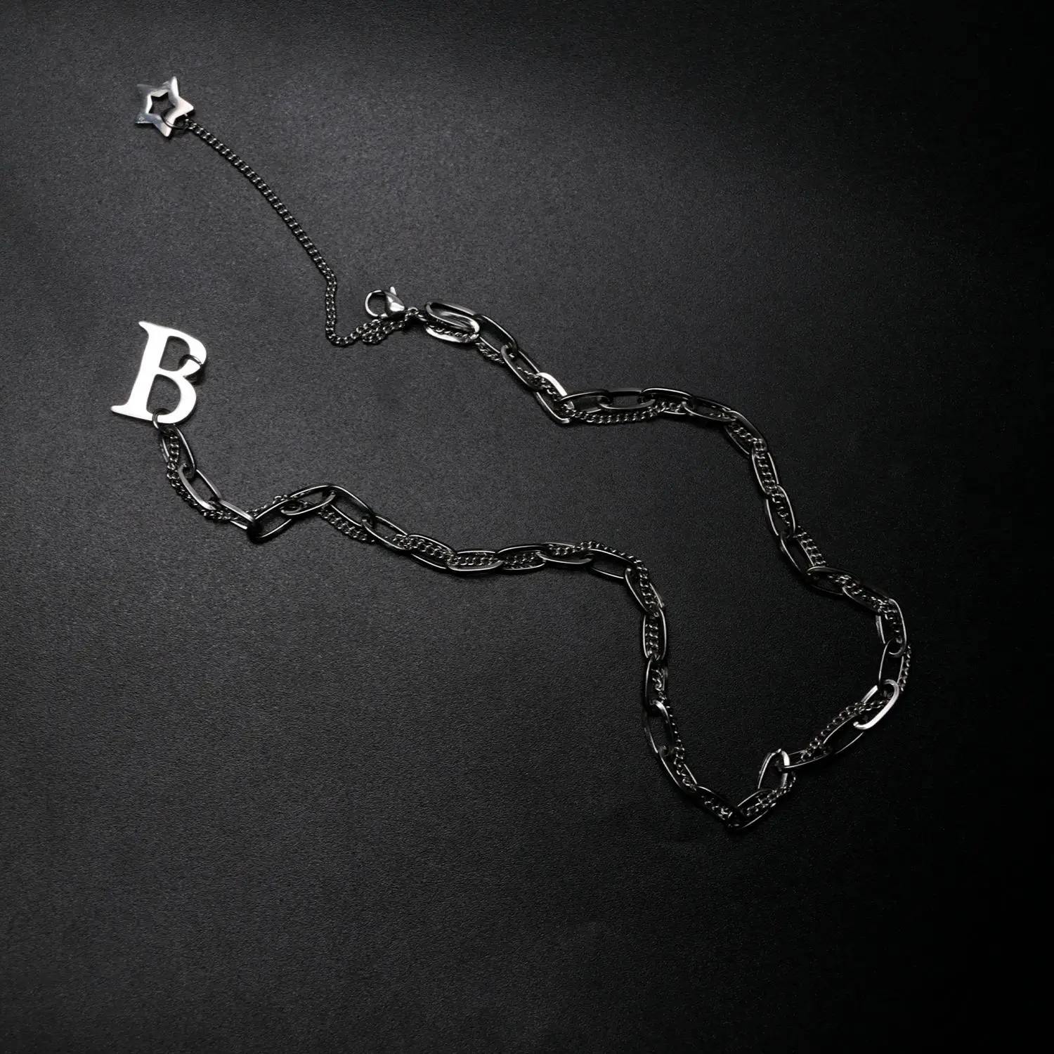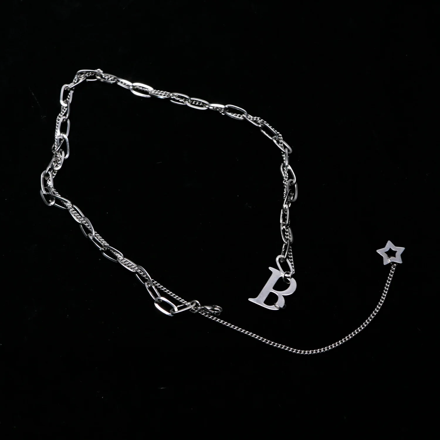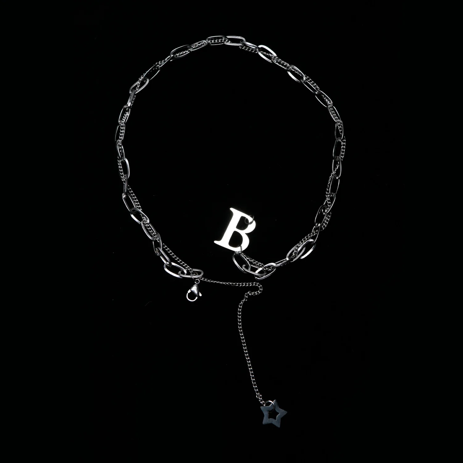 Punk Letter B Pendant Thick Chain Necklace for Women Men Goth Choker Neck Chains Vintage Necklace Jewelry Gift