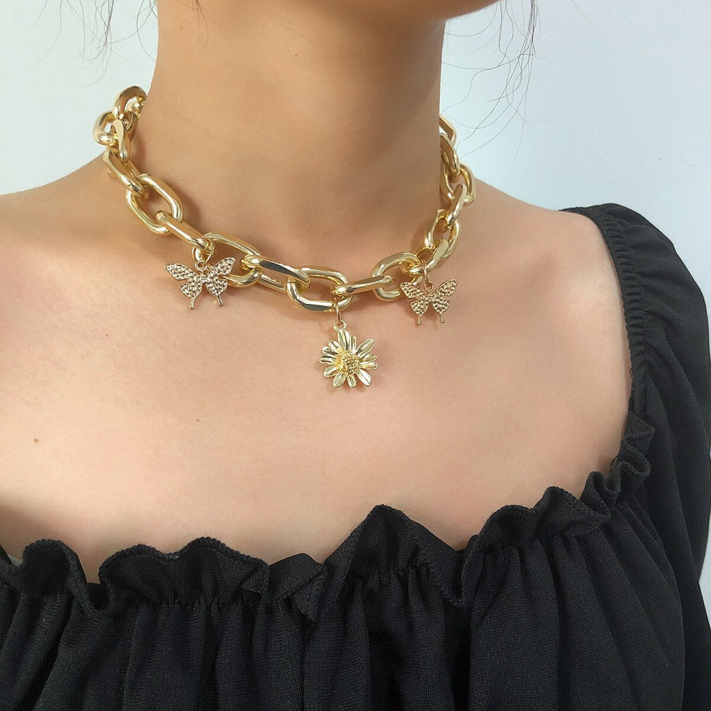 Punk Miami Cuban Choker Necklace Collar Statement Hip Hop Butterfly Big Chunky Aluminum Thick Chain Necklace Women Chocker 2021