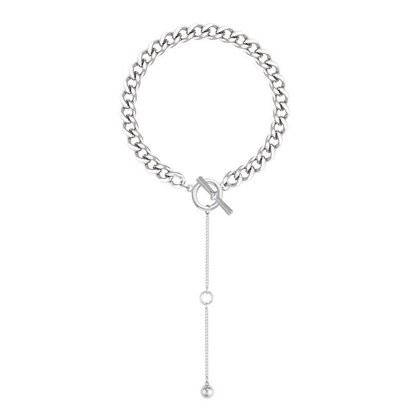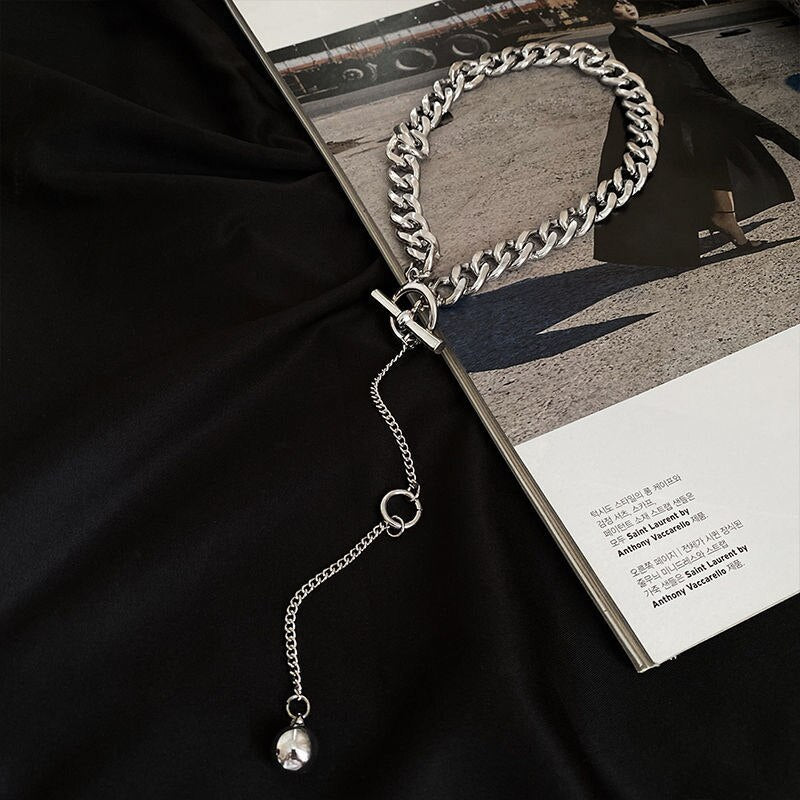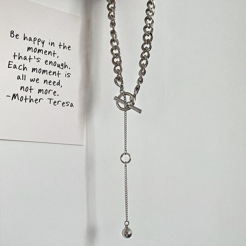 Punk Miami Cuban Round Bead Long Pendant Fall Winter Stainless Steel Sweater Chain Cool Tide Cold Wind Hip-hop Clavicle Chain