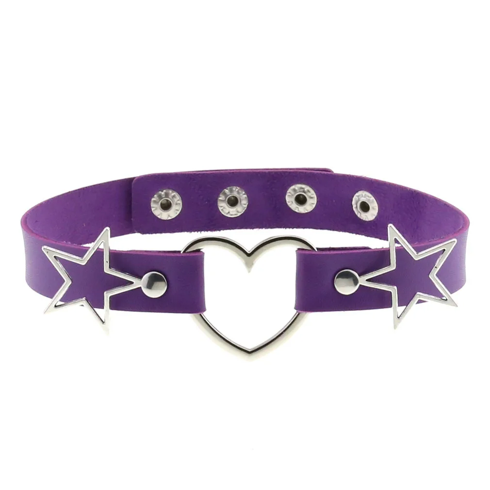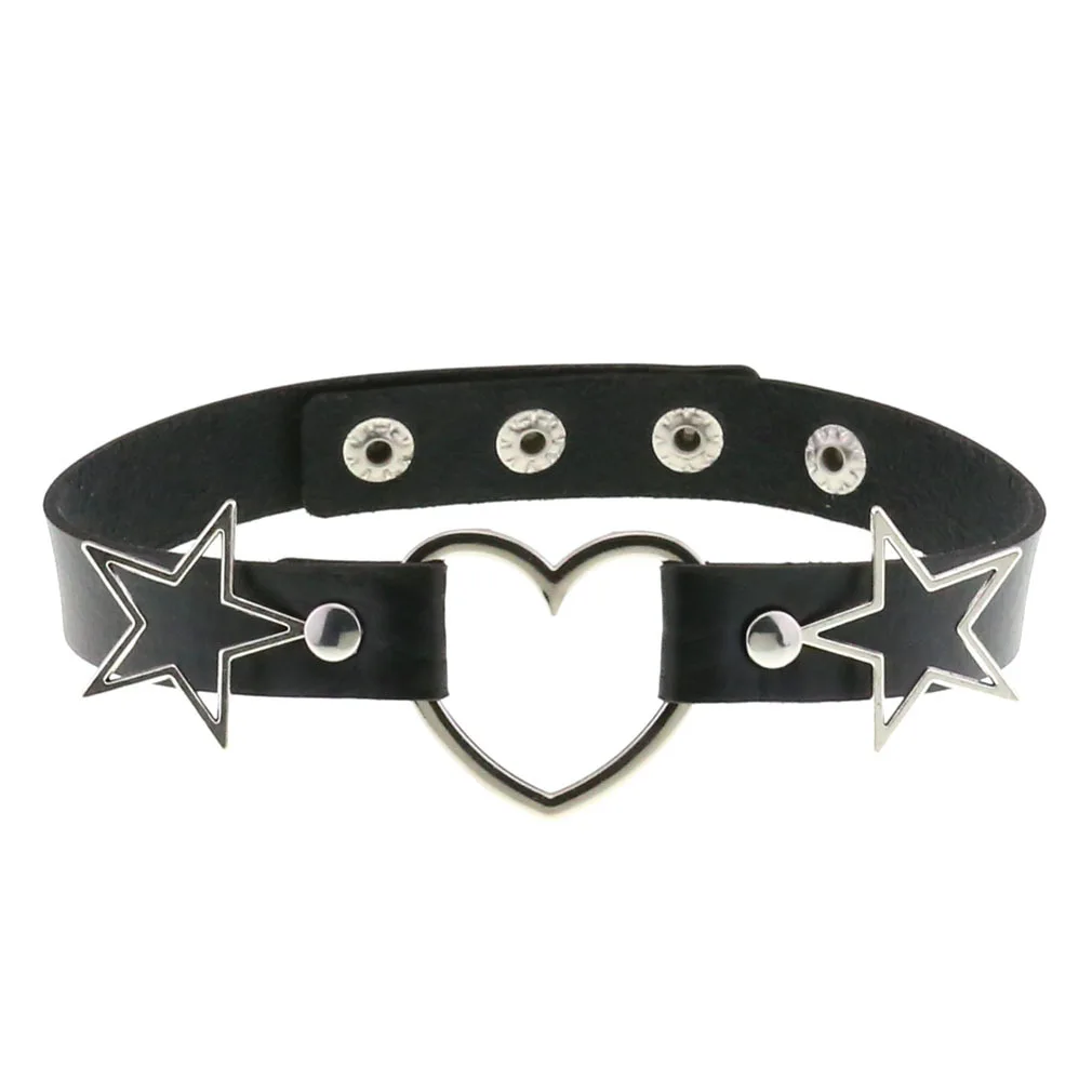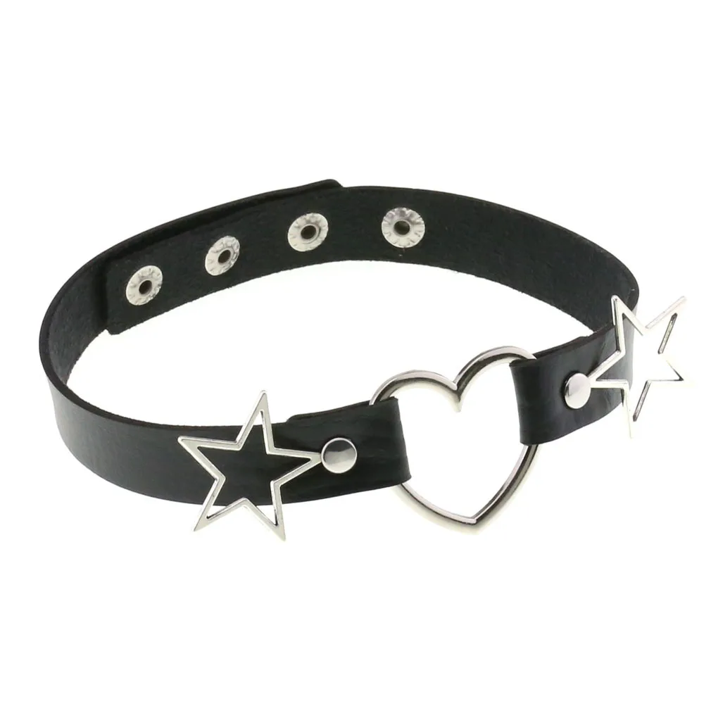 Punk PU Leather Heart Star Choker Collares Women Vnitage Statement Necklaces Gothic Jewelry Bijoux Femme