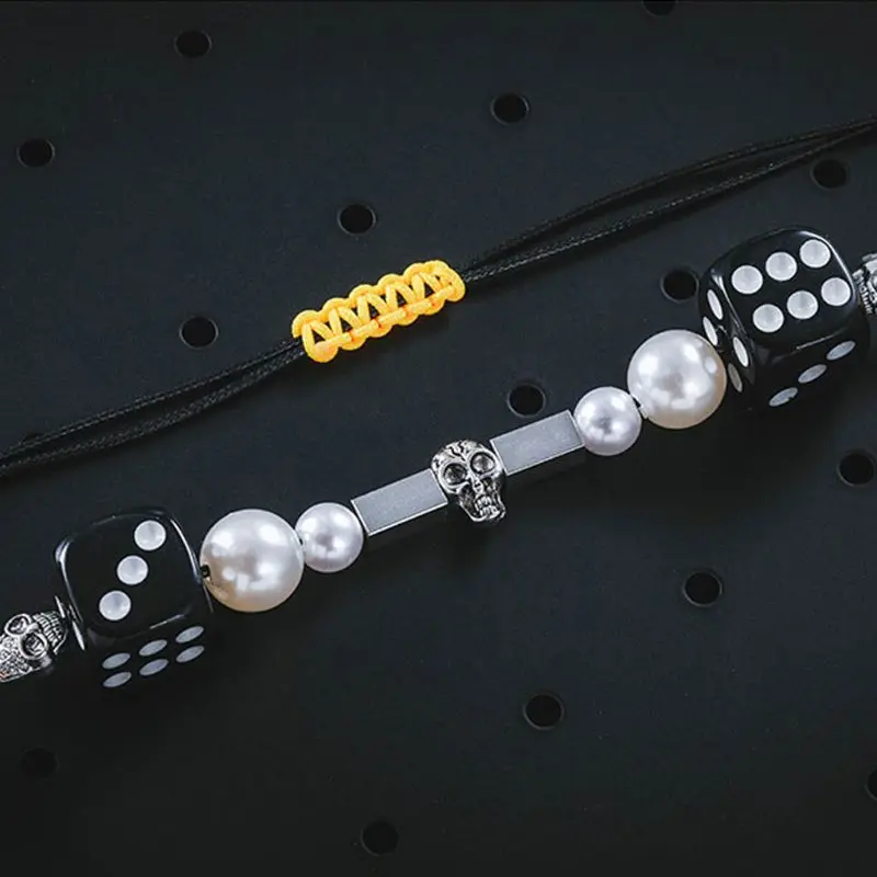 Punk Rock Pearl Smiley Skull Rope Adjustable Choker Lucky Dice Beaded Necklaces Punk Streetwear Jewelry Unisex