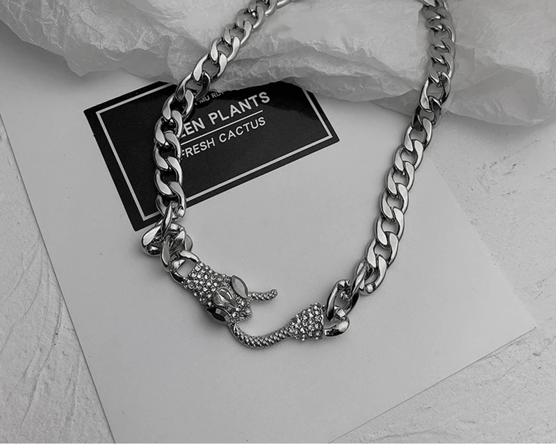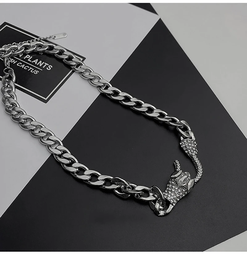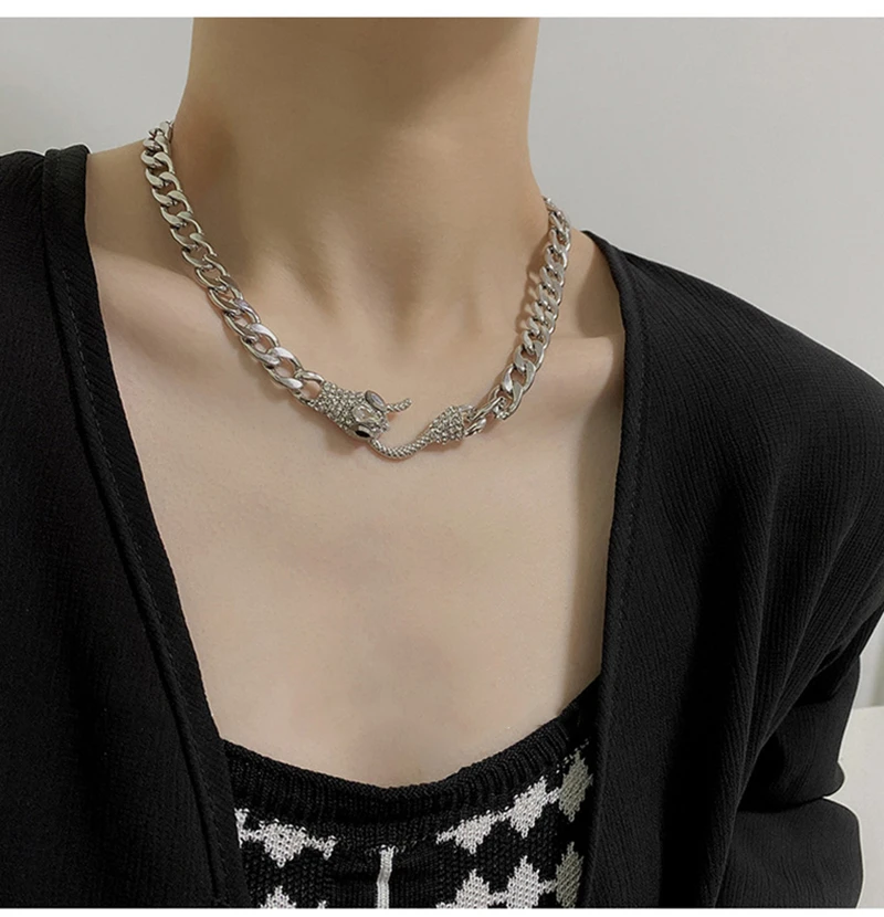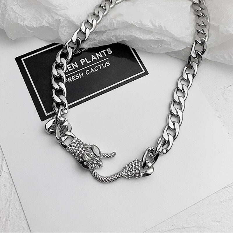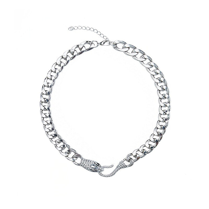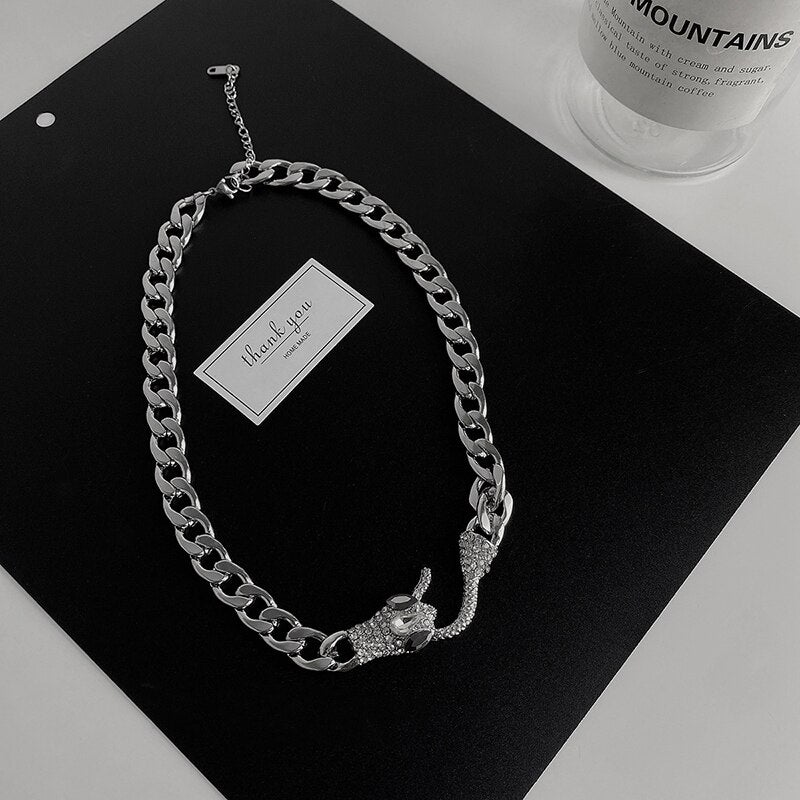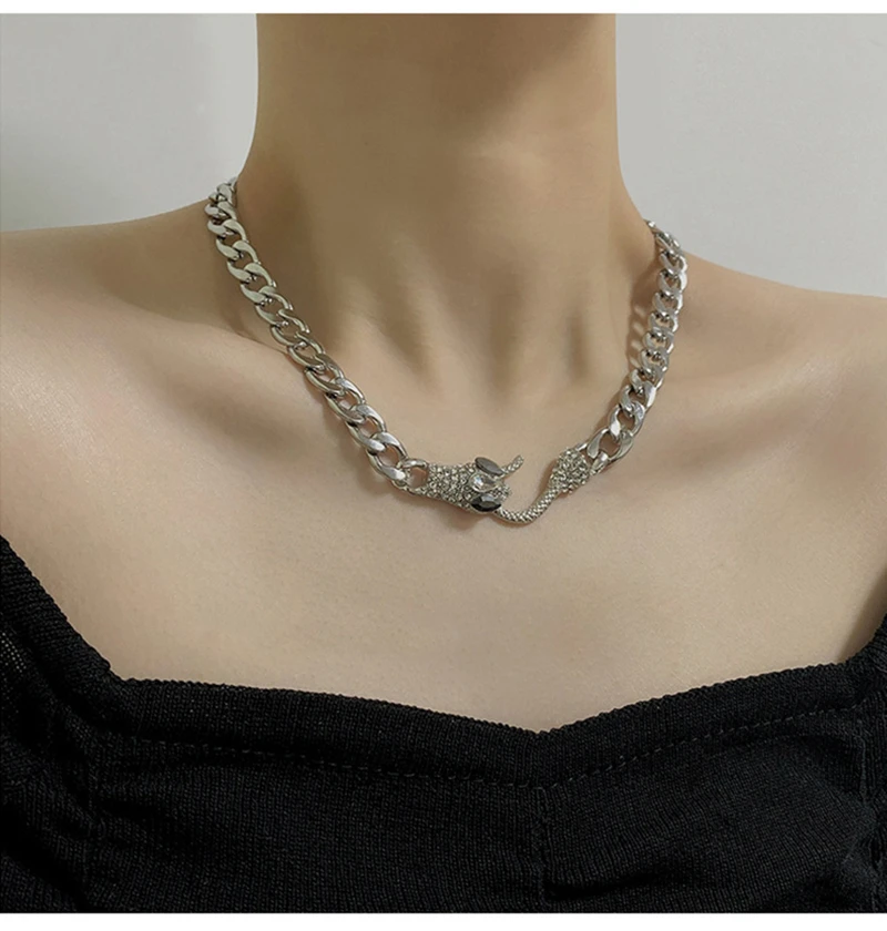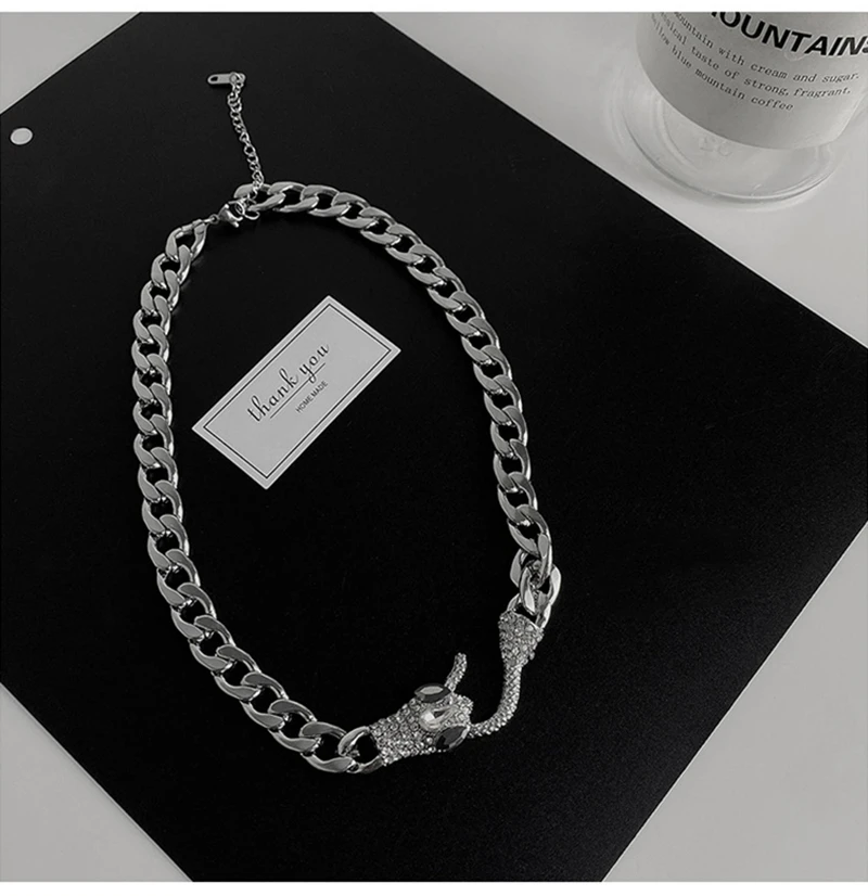 Punk Snake Necklaces for Women Men Crystal Snake Hip Hop Chain On The Neck Short Necklace Personality Jewelry Texture Gift