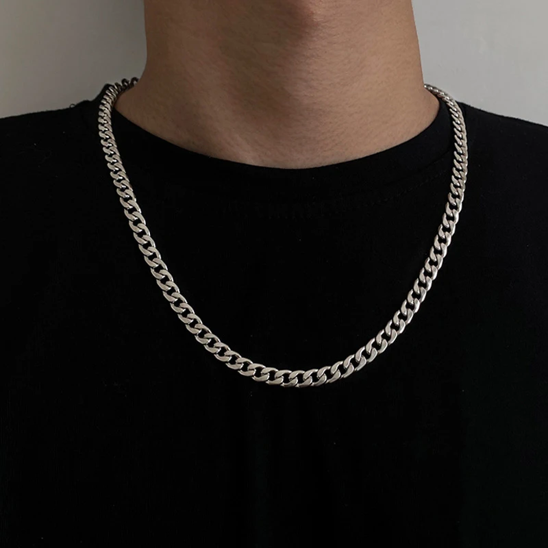 Punk Stainless Steel Necklace for Men Women Cuban Link Chain Chokers Hiphop VintageTone Solid Metal