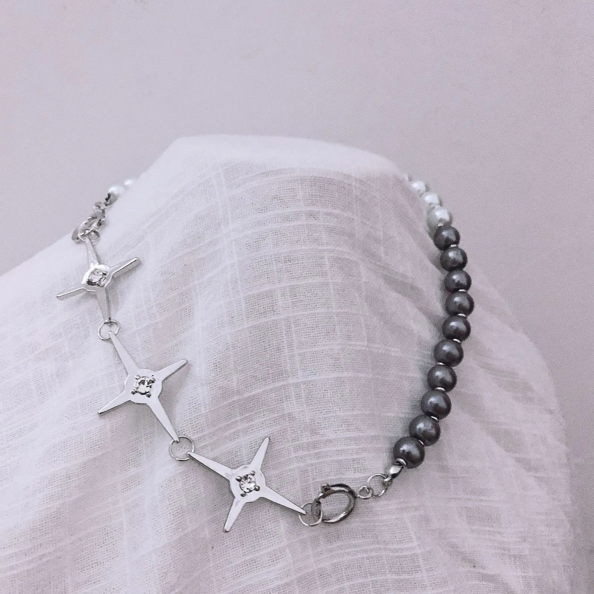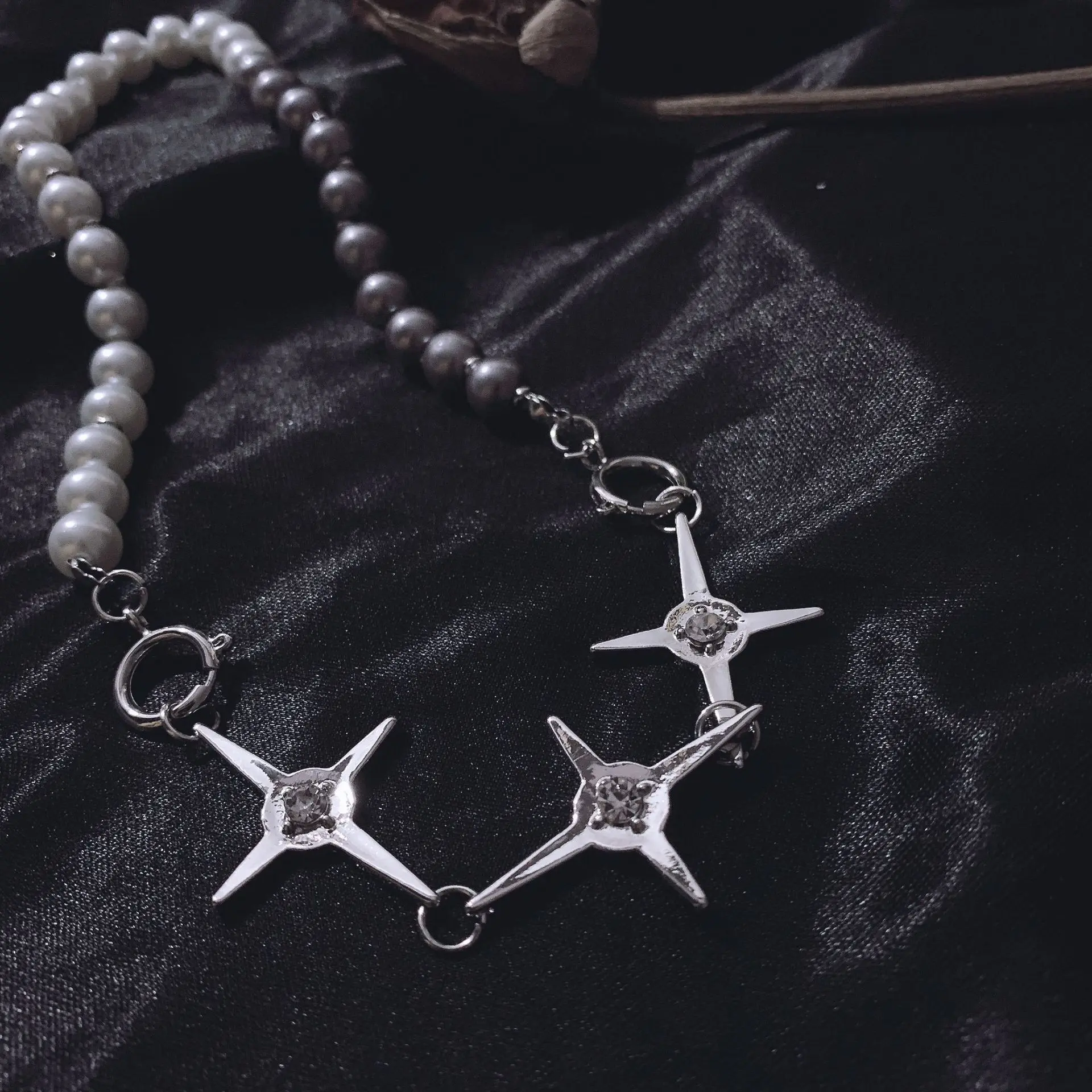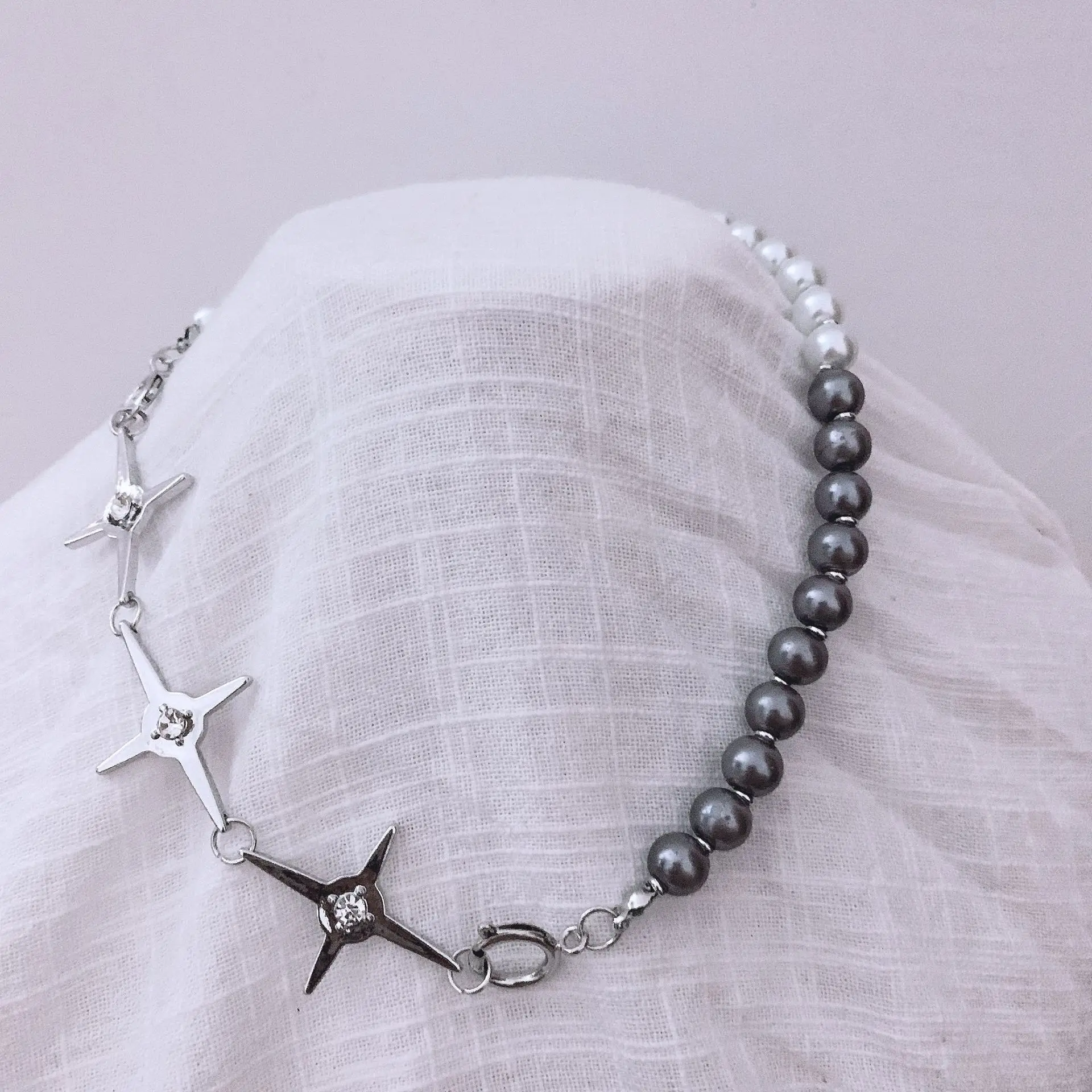 Punk Star Silver Color Crystal Mix Color Pearl Choker Necklace For Women Girl Trendy Elegant Chic Pendant Necklace Cool Jewelry