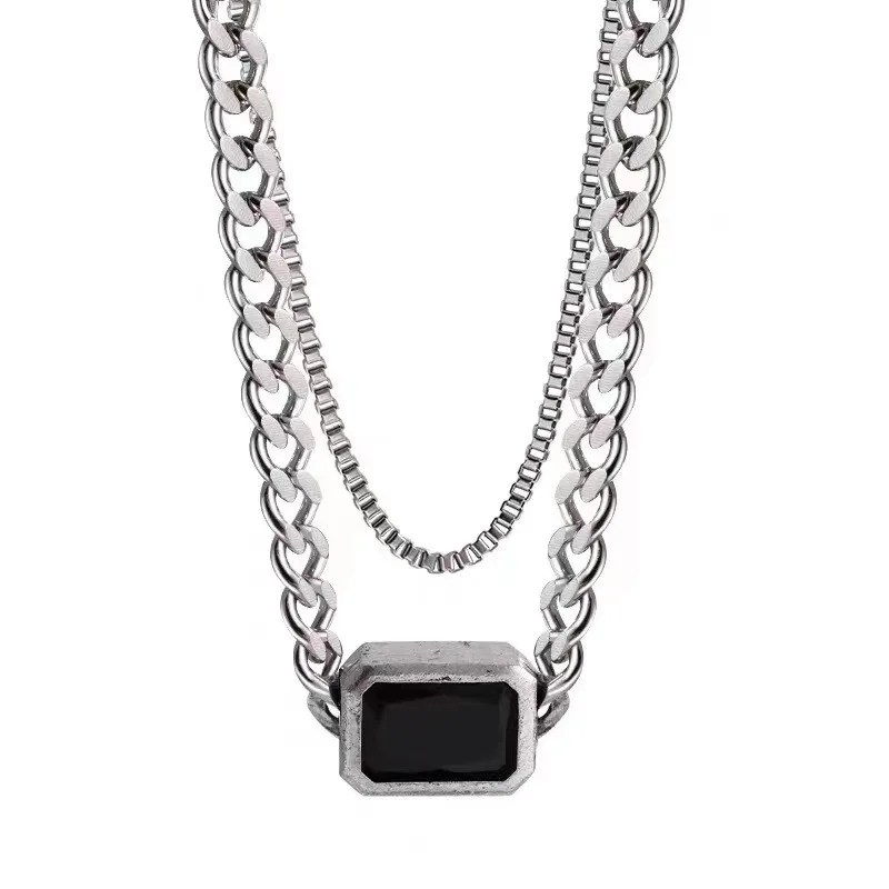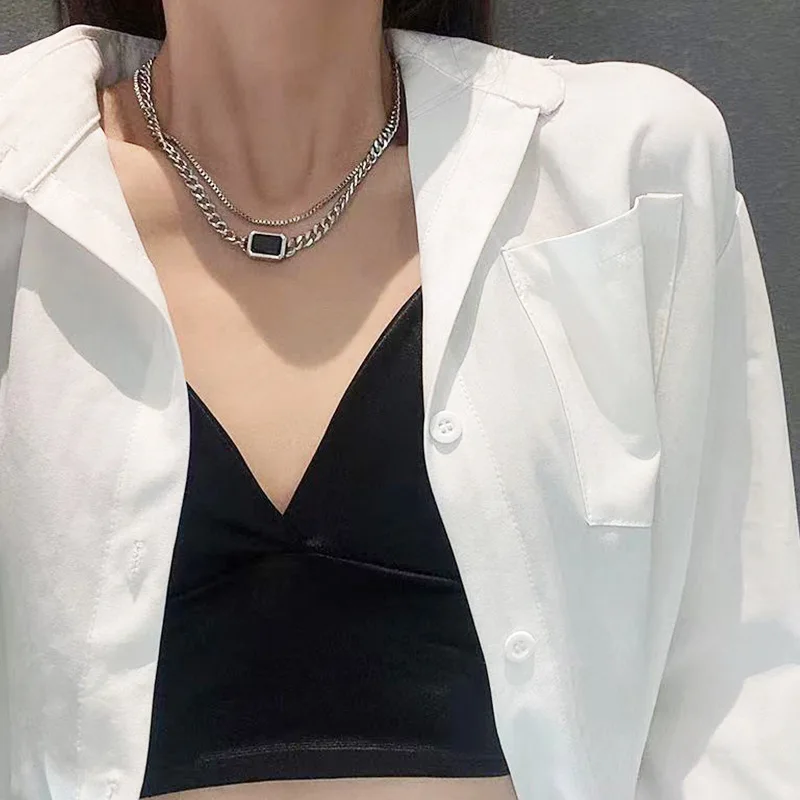 Punk Style Hip Hop Thick Chain Short Multilayer Necklace For Woman Black Square Neck Chain Jewelry Sweater Chain