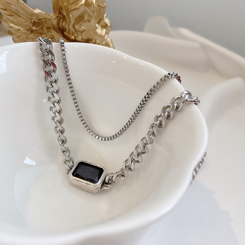 Punk Style Hip Hop Thick Chain Short Multilayer Necklace For Woman Black Square Neck Chain Jewelry Sweater Chain
