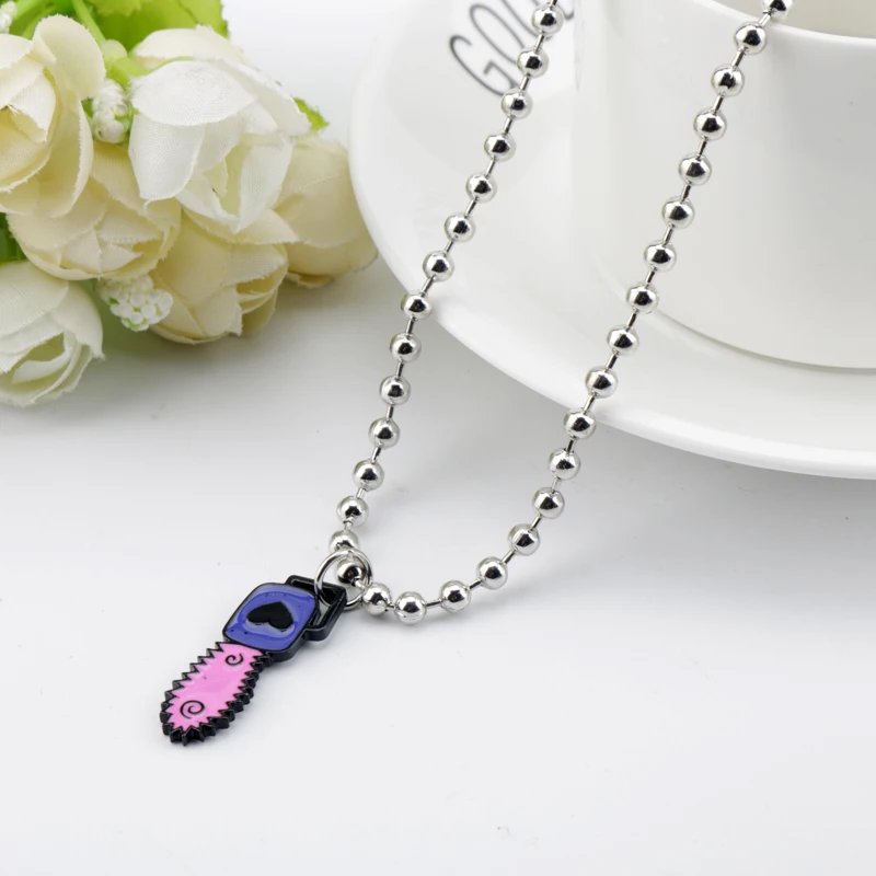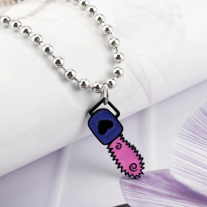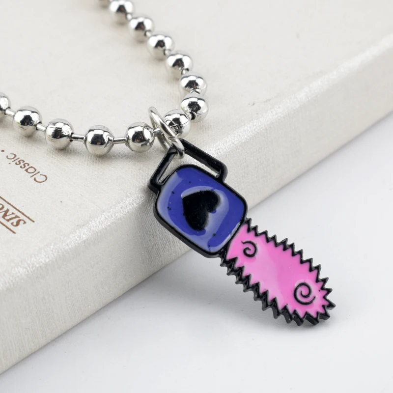 Punk Style Igirl Chainsaw Necklace Chainsaw Pendant Jewelry Beads Chain Movie Saw Theme Necklaces for Halloween Party Accessory