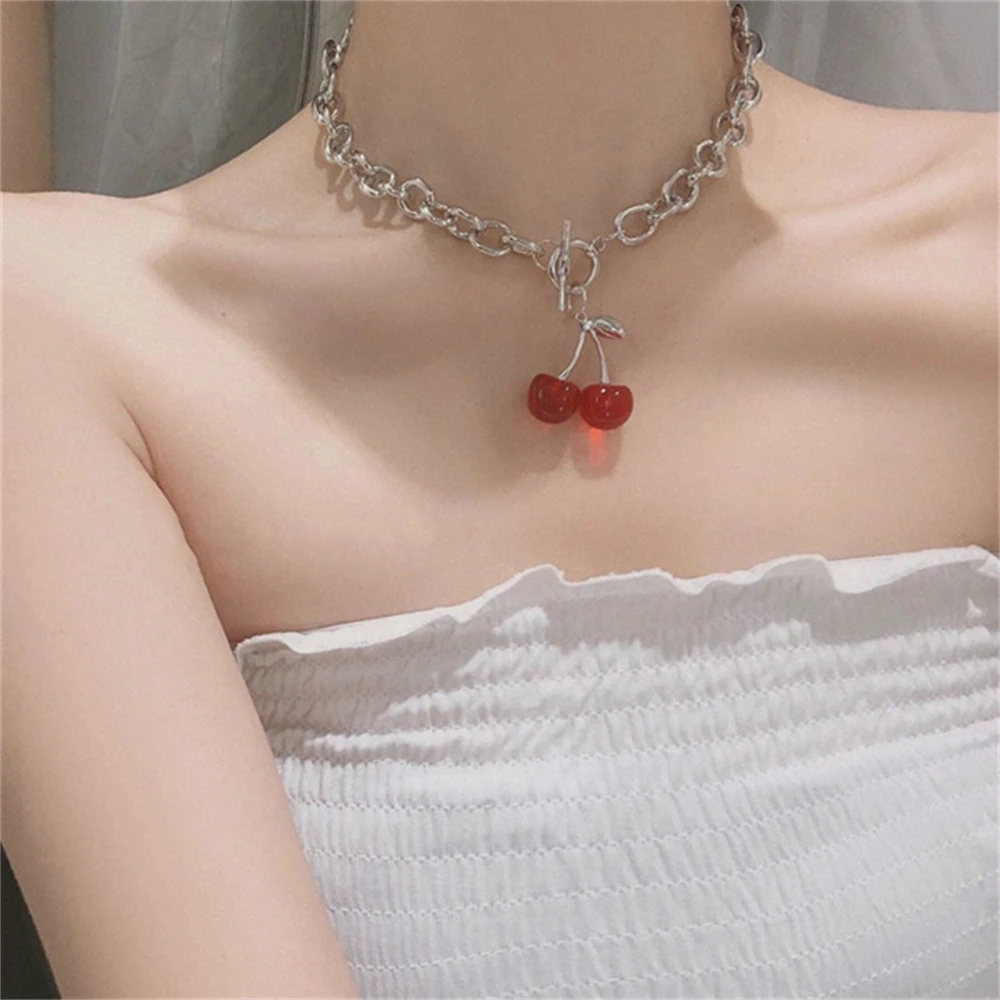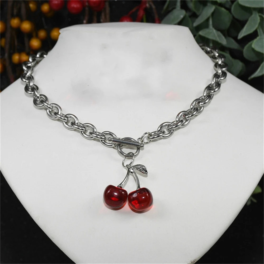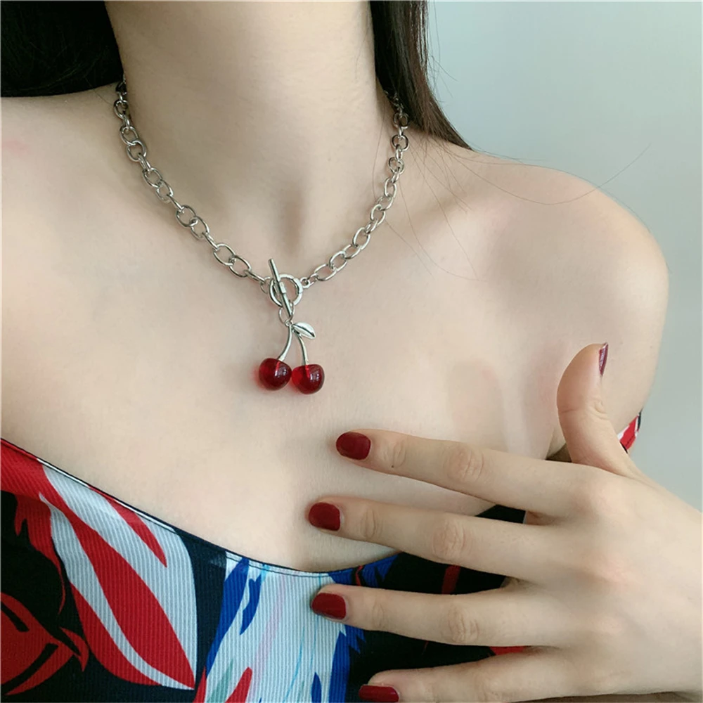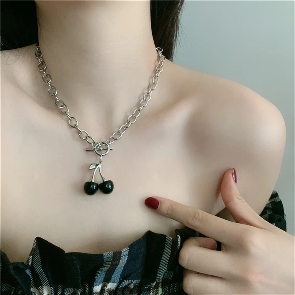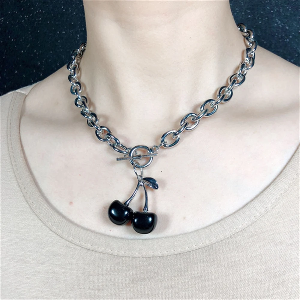 Punk Sweet Cherry Necklace Gothic Silver Color Metal Choker For Women Girls Chain Jewelry