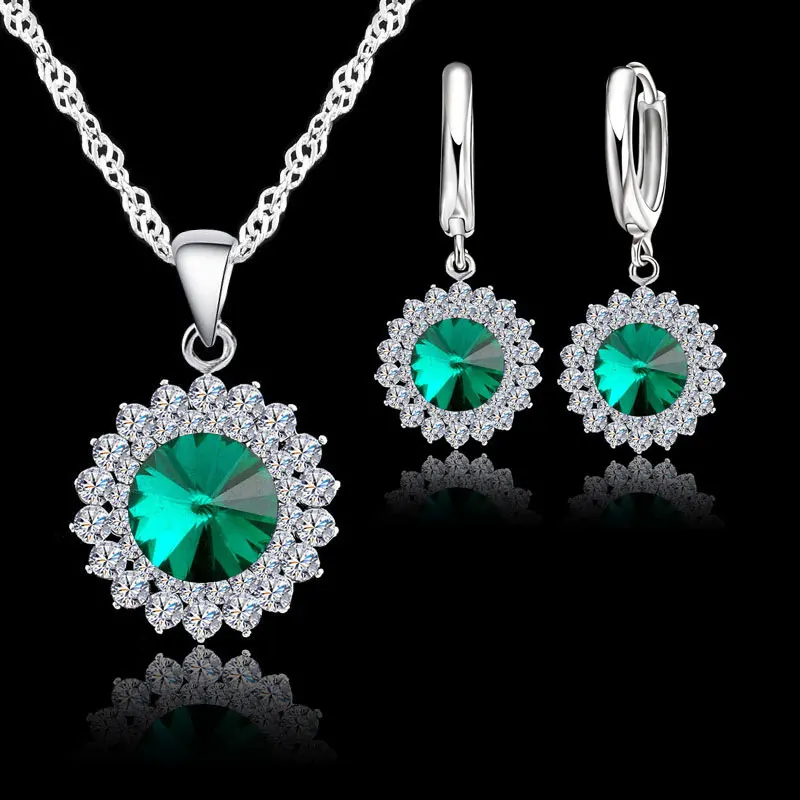 Exquisite 925 Sterling Silver Crystal Necklaces Earrings Set Women Fine Bridal Wedding Jewelry Sets Accessory 3Colors
