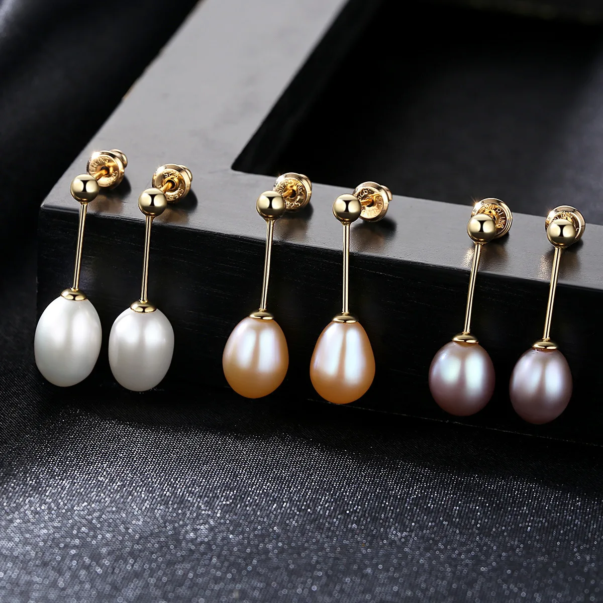Pure S925 silver 8-9mm Rice Natural Pearl Earrings For Women Jewelry Pearl 3 Colors Choose Gift