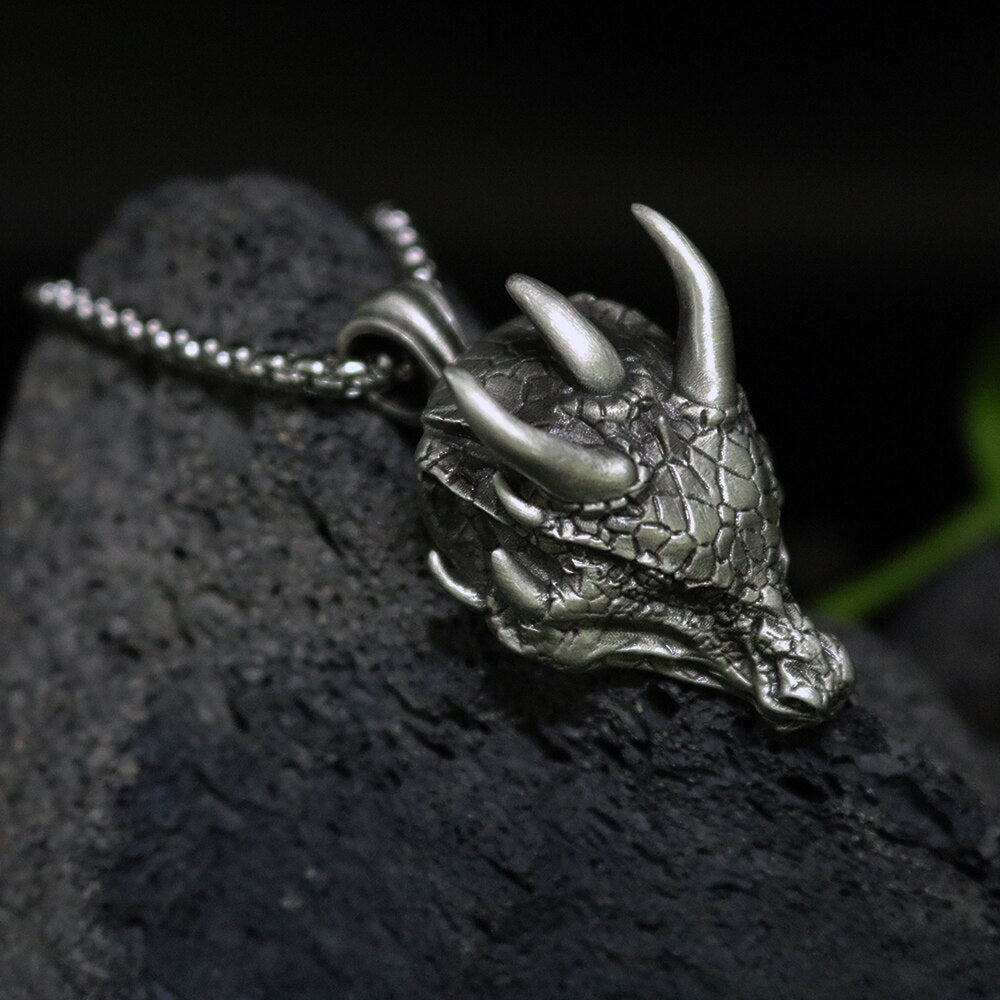 Pure tin animal Jewelry on the neck domineering dragon head pendant necklace men hip hop retro zodiac Men's chain necklace