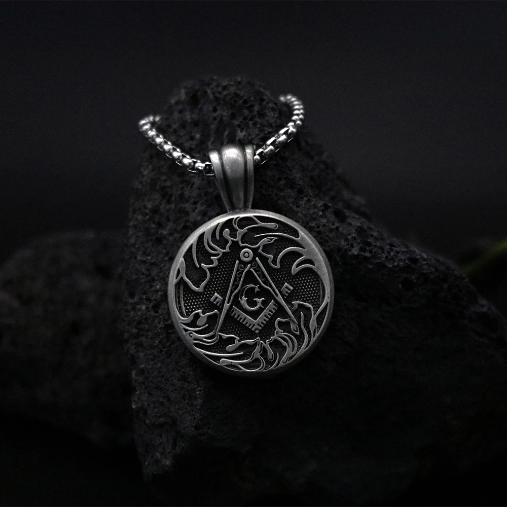 Pure tin Jewelry on the neck G Freemason round pendant necklace men retro vintage tag accessories man chain necklace