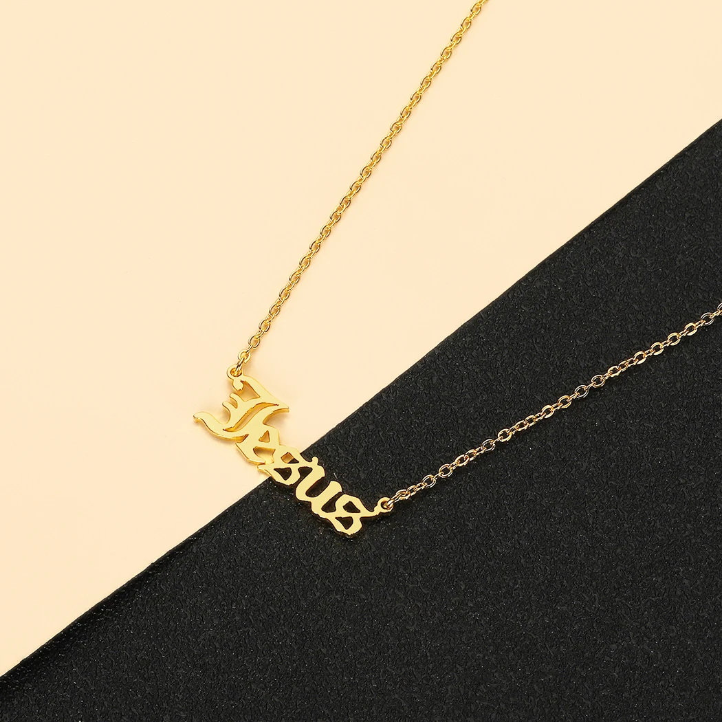 QIMING Christ Jesus Letter Necklace For Women Men Ankh Jewelry Gold Cross Pendants Necklaces Collier Dropship