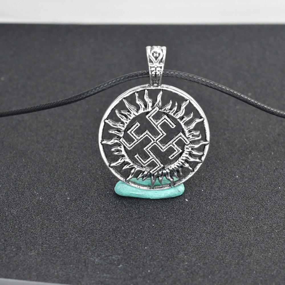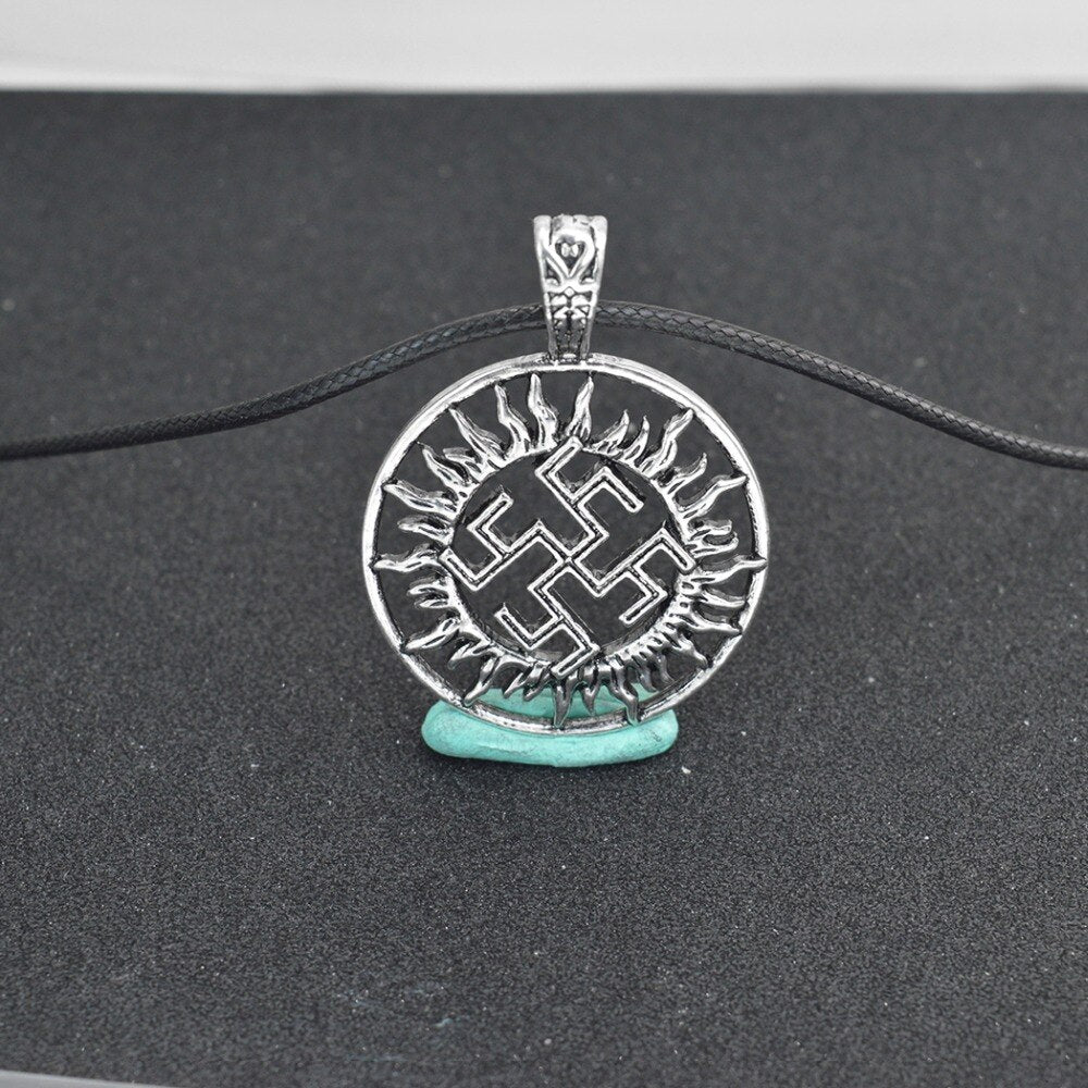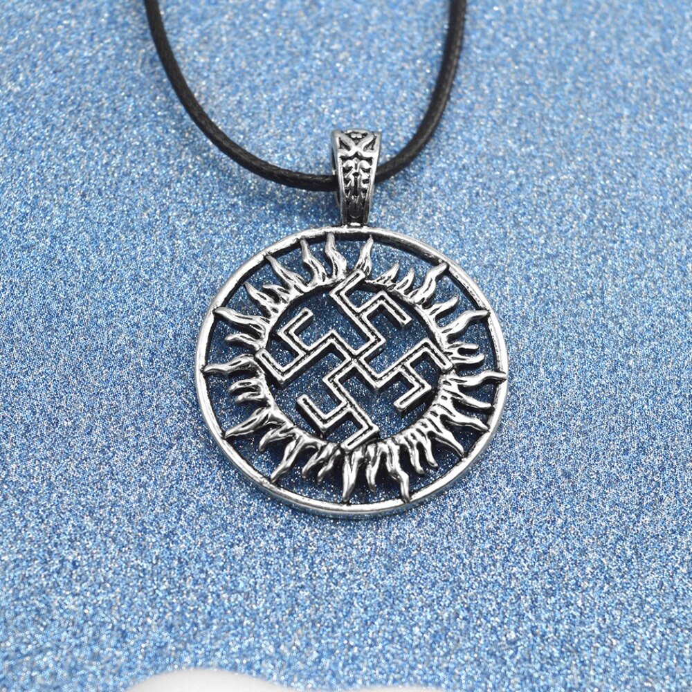 QIMING Symbol Slavic Pendant Necklace Gift For Boyfriend Black Chain Necklace For Women Charm Jewelry Bijoux