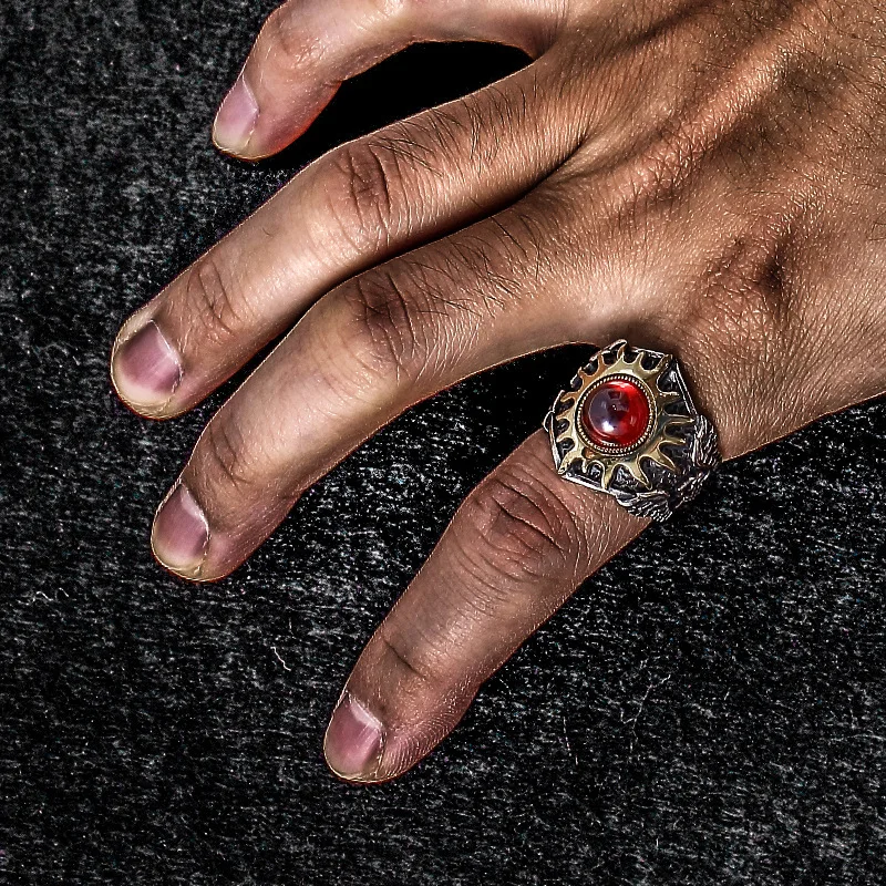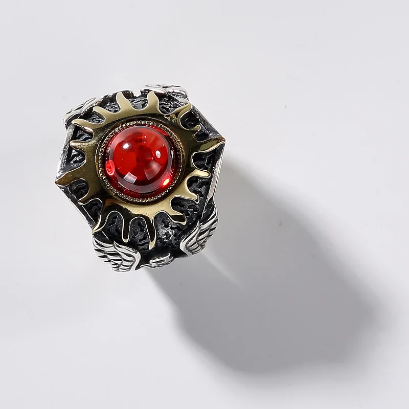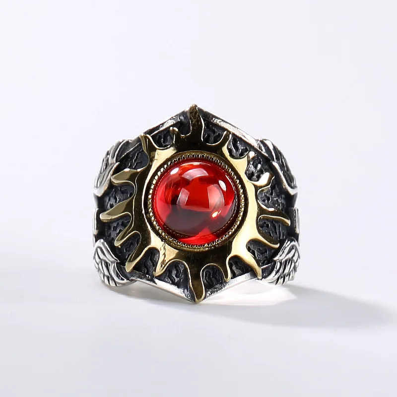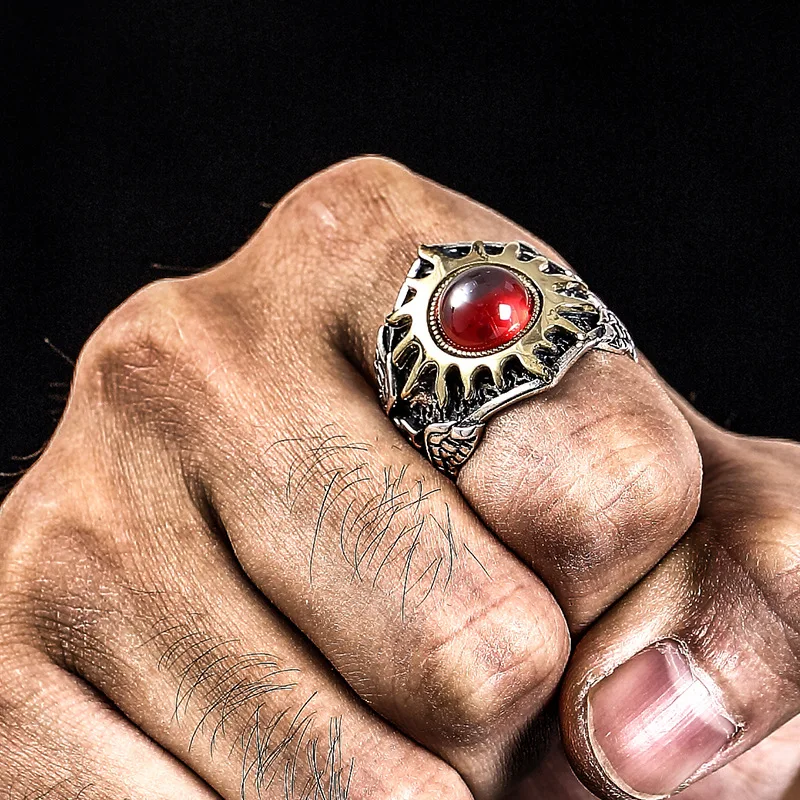 Quality 925 sterling silver sun god vintage personality trendy Domineering man adjustable ruby rings for man best gift jewelry