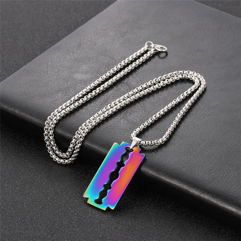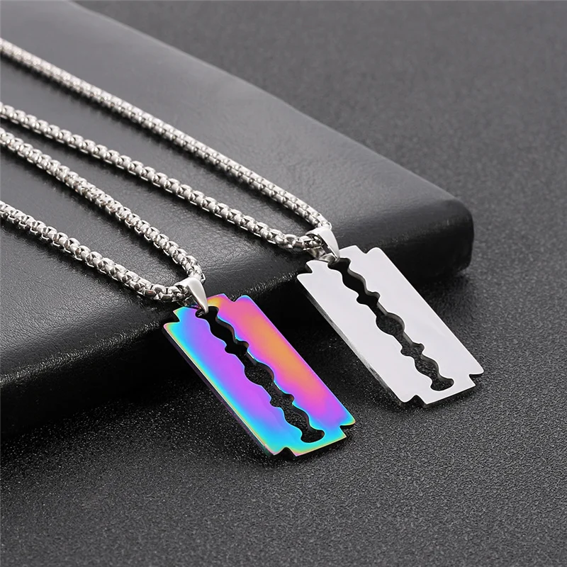 Quenching Silver Color Stainless Steel Razor Blades Pendant Necklaces Men Jewelry Steel Male Shaver Shape Necklace