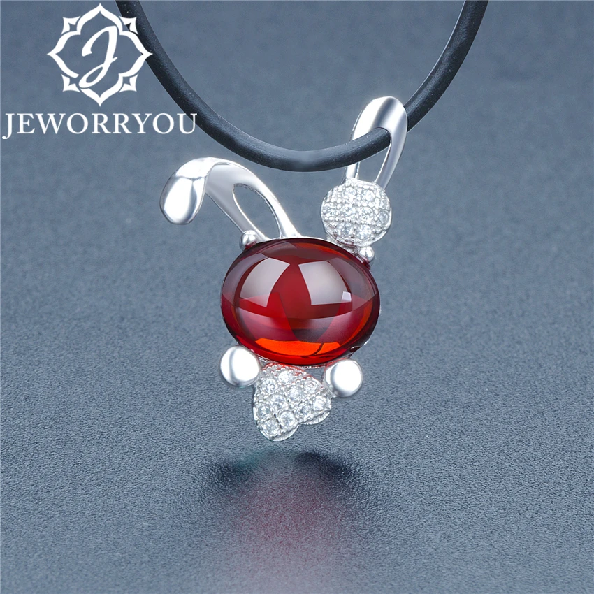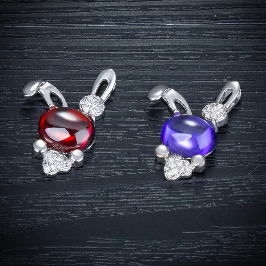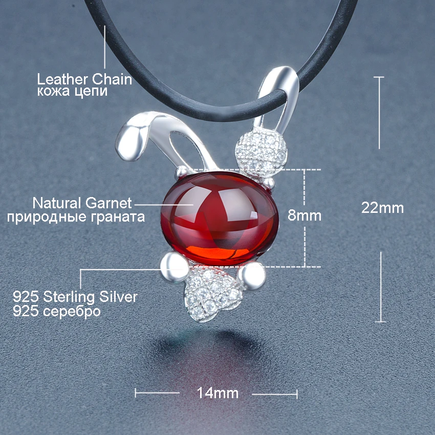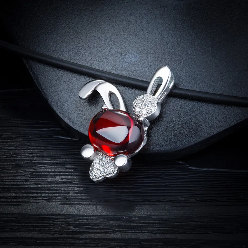 Rabbit Chokers Necklaces For Girls 925 Silver Jewelry Making 14x22mm Pendant Necklace Women Natural Stone Red Bead 8x10mm