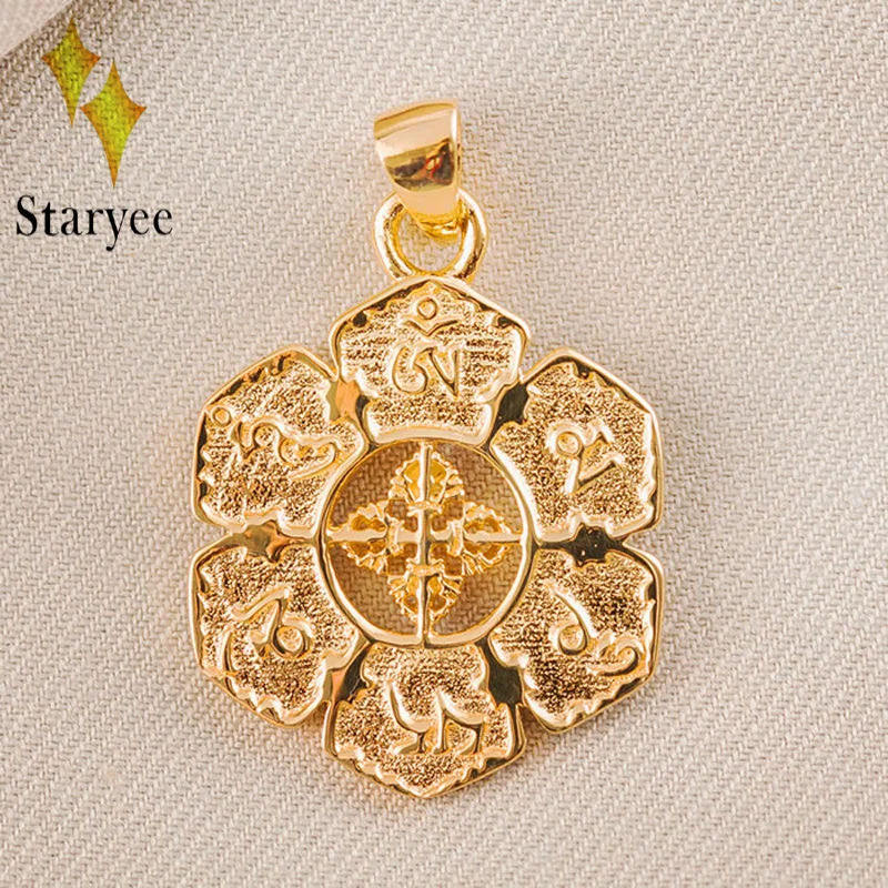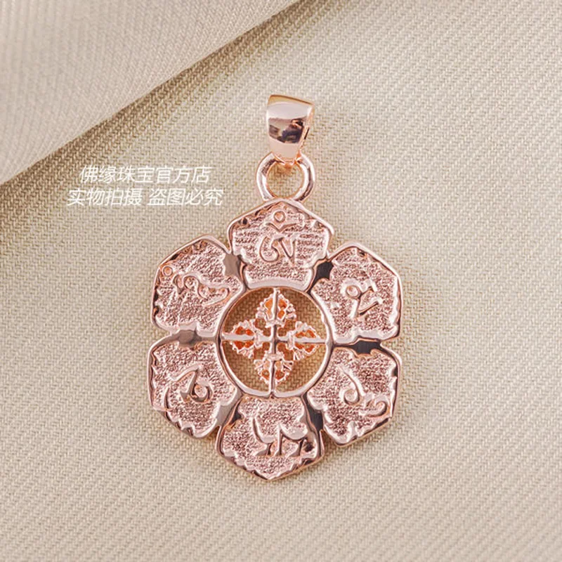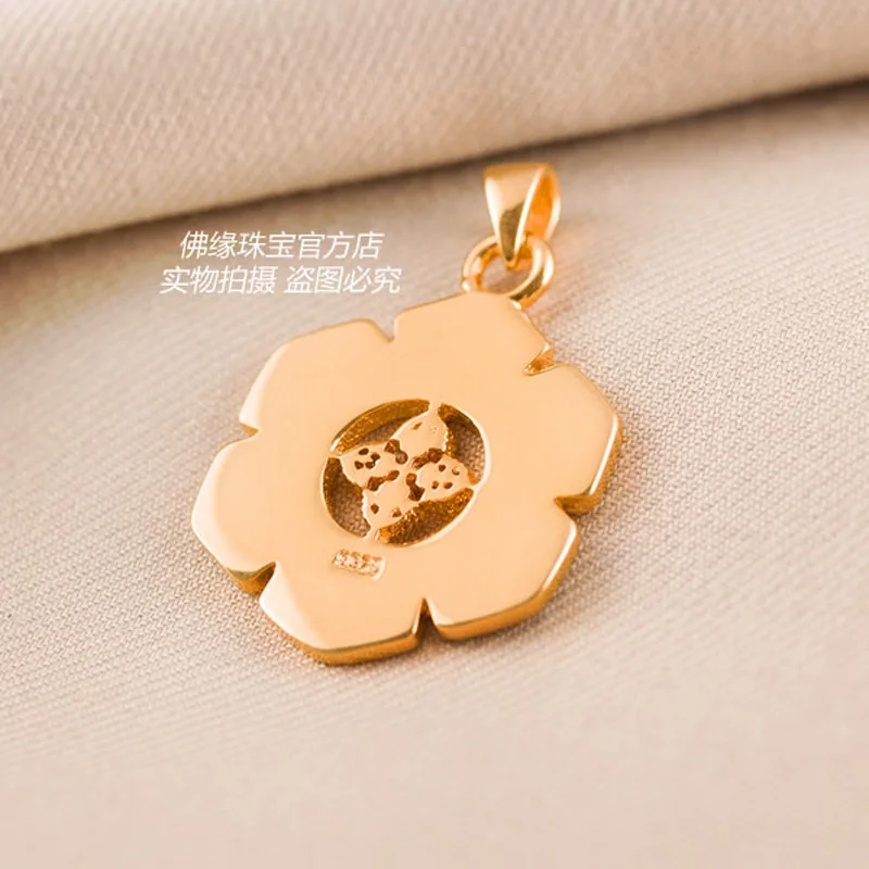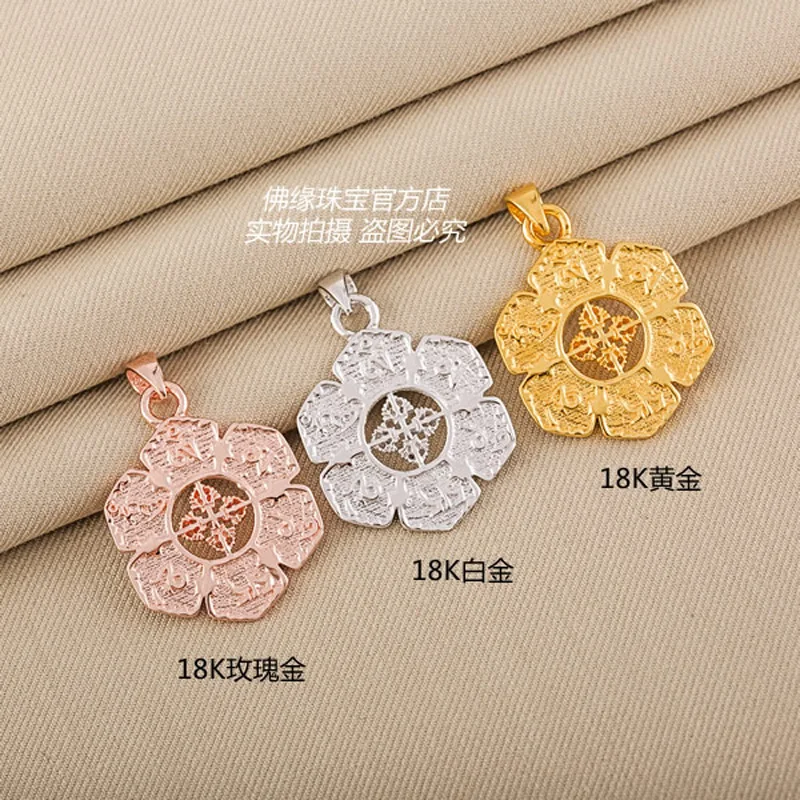 Real 18k Solid Yellow Gold Buddhism Talisman Symb Round Wheel Amulet Chain Pendant Ncklaces For Women Free Engraving Dropship
